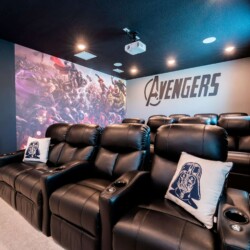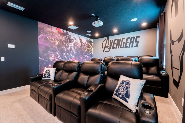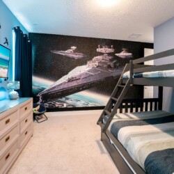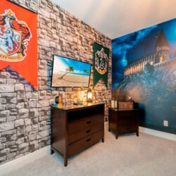 This amazing 7 bedroom 6.5 bathroom luxury home is located in the Encore Resort. We’ve created the perfect space to live the Disney dream! This home has three themed bedrooms. Live your Frozen dream, enjoy a trip to Hogwarts, or fly through the galaxy with the heroes from Star Wars.