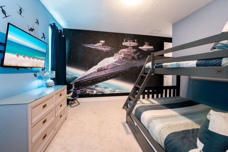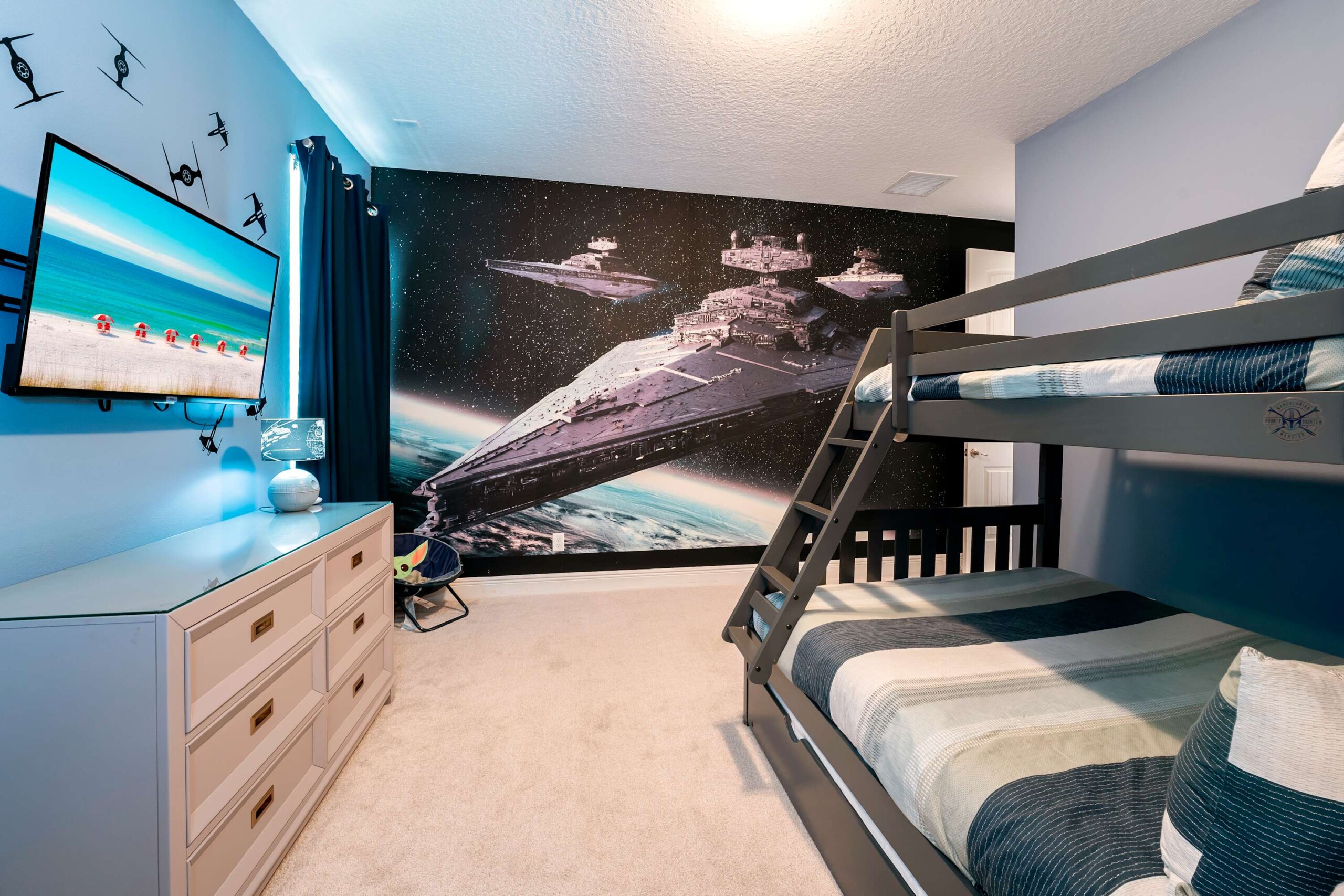 Bedroom 3 – Star Wars – 43″ TV, Twin over Full Bunk w/ Trundle, attached bathroom with shower
