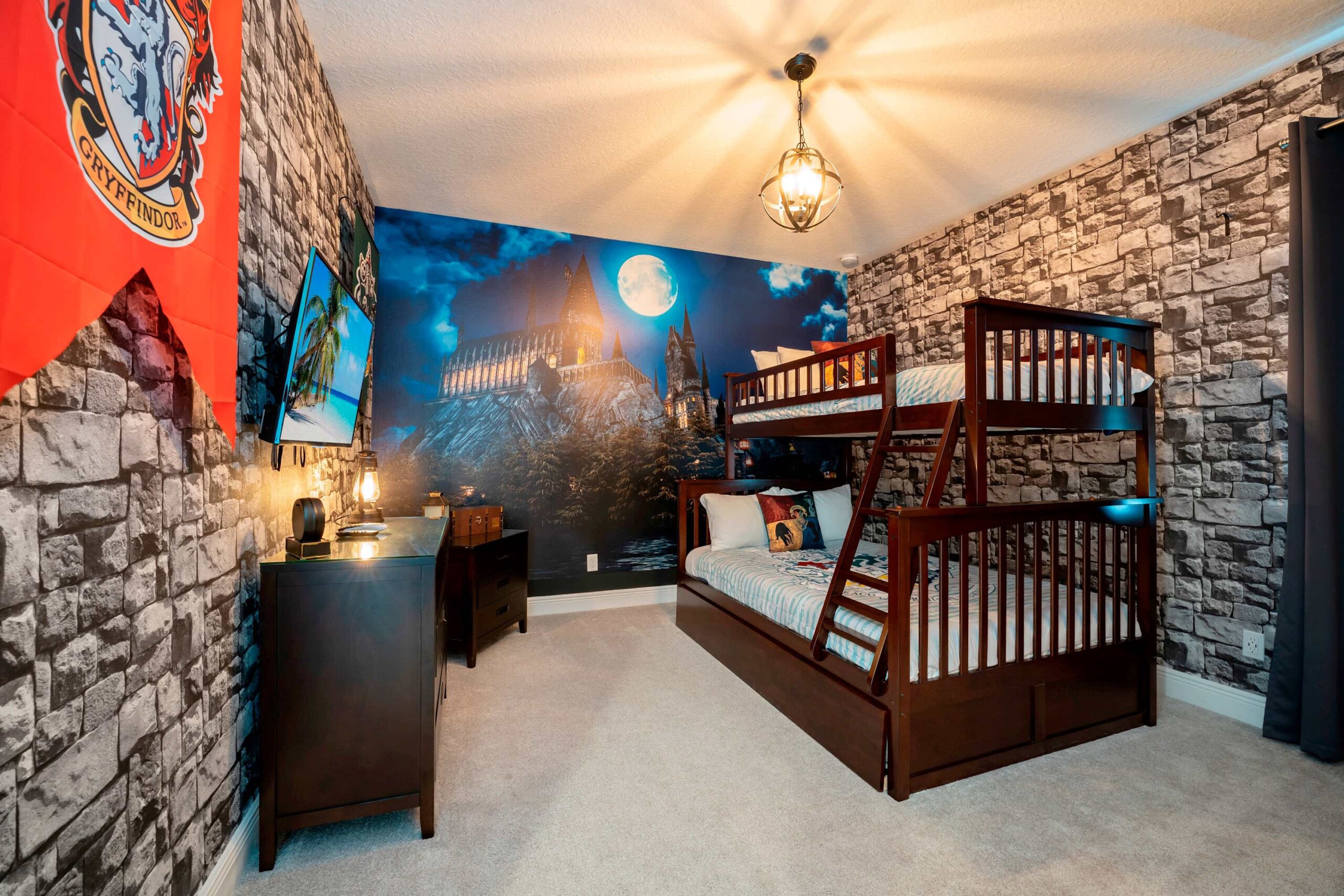 Bedroom 7 – Harry Potter – 43″ TV, Twin over Full Bunk w/ Trundle, attached bathroom with shower