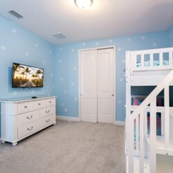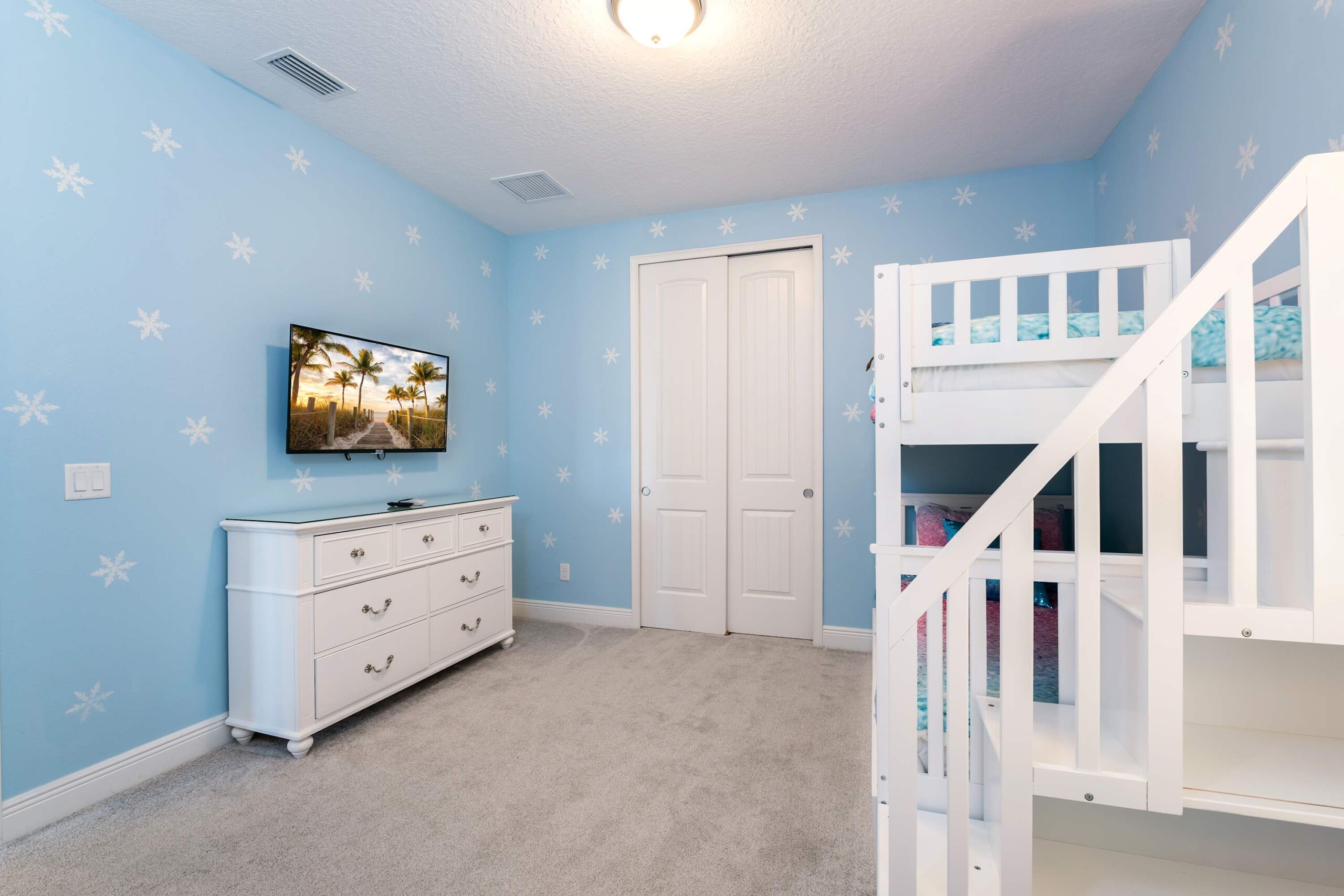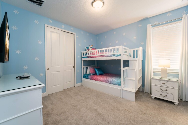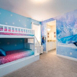 Bedroom5- Frozen Room, 43″ TV, Twin over Full Bunk w/ Trundle, attached to Jack & Jill bathroom