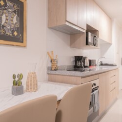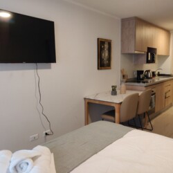 The studio is fully furnished and equipped, with everything you need to feel at home. It includes a kitchen, microwave, and basic kitchen utensils to prepare your meals or snacks at any time. Additionally, if you are coming for work, don’t worry, we have WiFi to ensure connectivity during your stay. The main room features a double bed, TV, bathroom, and a welcome pack with toilet paper, soap, and towels.