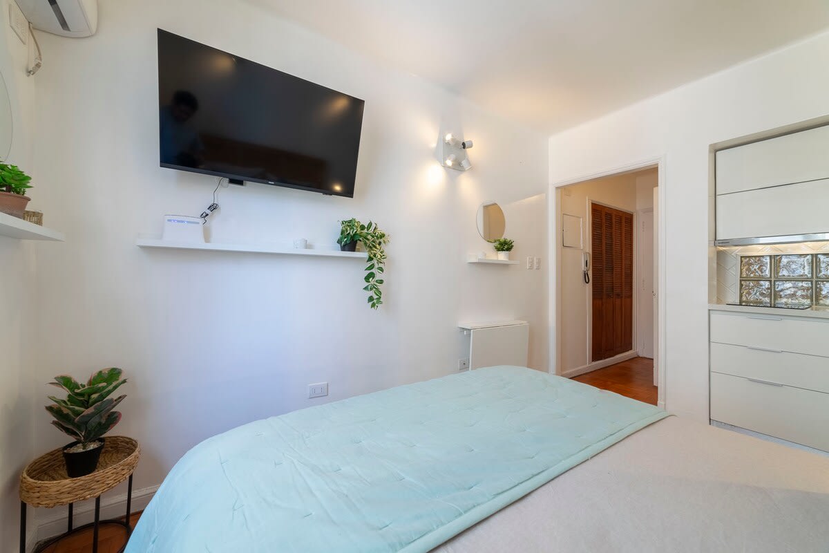 El departamento estΓ‘ completamente amoblado y equipado, cuenta con todo lo que necesitas para sentirte como en casa, Smart TV y WiFi para asegurarte una estadΓa cΓ³moda e inolvidable. (NO INCLUIMOS COMPUTADOR) Incluye una cocina equipada, microondas, refrigerador, hervidor elΓ©ctrico, tostador y utensilios de cocina bΓ‘sicos para cocinar o preparar aperitivos en cualquier momento. Tendras aun pequeΓ±o escritorio para que puedas estudiar o trabajar, una cama comoda con sabanas limpias y un baΓ±o bien iluminado con toallas frescas.