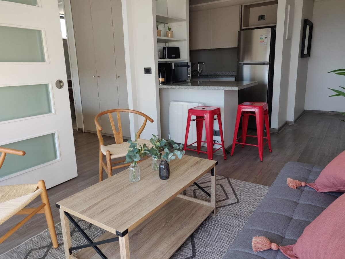 A unique accommodation for a peaceful and relaxing stay in Santiago. During your stay, you can enjoy our seasonal pool, open from December to March. We also have a barbecue area and a multipurpose room, available for an additional cost, as well as a coworking space. Excellent location, just steps from IrarrΓ‘zabal Metro, close to iconic places like the National Stadium and the vibrant Plaza ΓuΓ±oa, where you can enjoy a variety of dining and cultural options.