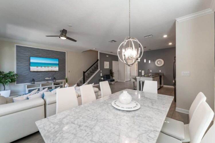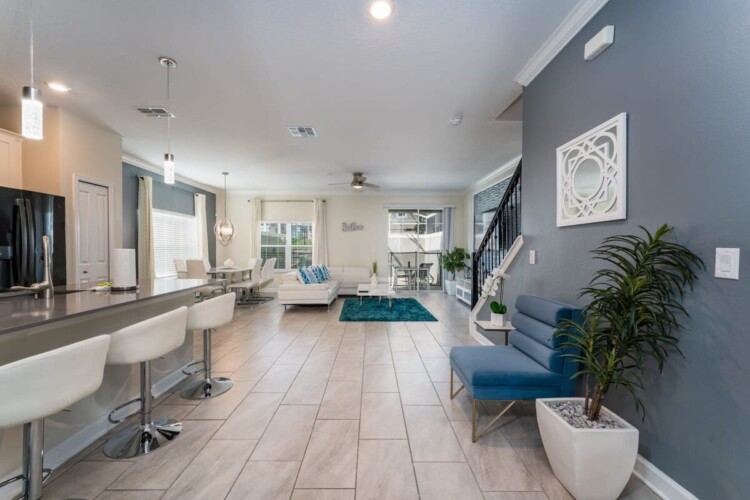 This amazing 5 bedroom luxury townhome is located in the Champion’s Gate Resort. We’ve created the perfect space to live the Disney dream!