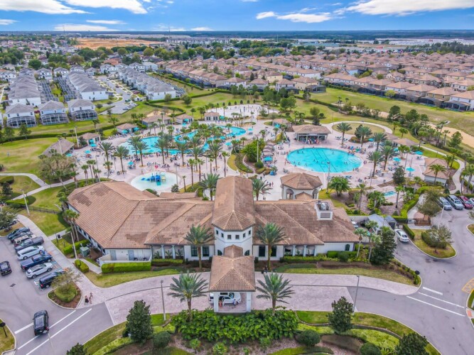 This luxurious amenity center is for homeowners in Lennar’s Champions Gate together with vacationing guests staying in the resort’s short term rental approved neighborhood, The Retreat at Champions Gate. Inside the 16,000+ sq. ft. | 1,500 mΒ² clubhouse building you will find The Grille Room restaurant and bar, concierge desk, a movie theater, fitness center, game room, and more. Among the outdoor amenities are two temperature controlled pools, a lazy river, 2-story water slide, childrenβs water play structure, sand volleyball, rentable cabanas, poolside food and drink service, and the Tiki Bar. Separately, the community also features 7 tennis courts and the Champions Gate Country Club golf course.