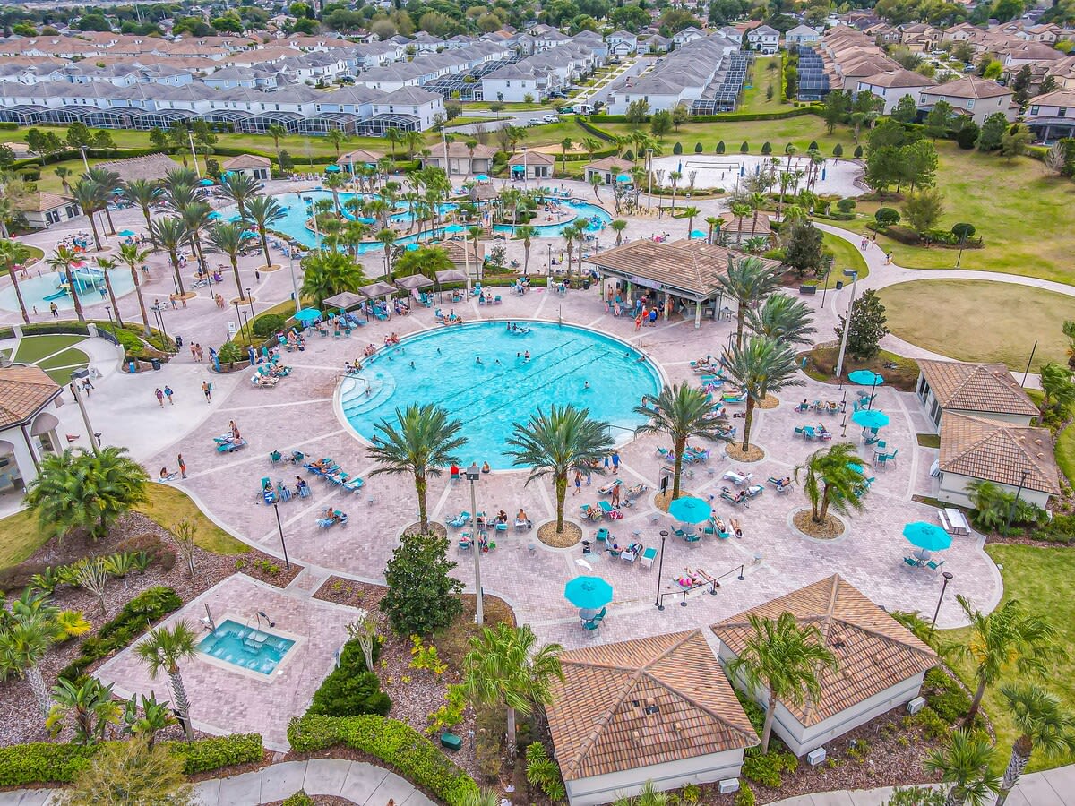 This luxurious amenity center is for homeowners in Lennar’s Champions Gate together with vacationing guests staying in the resort’s short term rental approved neighborhood, The Retreat at Champions Gate. Inside the 16,000+ sq. ft. | 1,500 mΒ² clubhouse building you will find The Grille Room restaurant and bar, concierge desk, a movie theater, fitness center, game room, and more. Among the outdoor amenities are two temperature controlled pools, a lazy river, 2-story water slide, childrenβs water play structure, sand volleyball, rentable cabanas, poolside food and drink service, and the Tiki Bar. Separately, the community also features 7 tennis courts and the Champions Gate Country Club golf course.