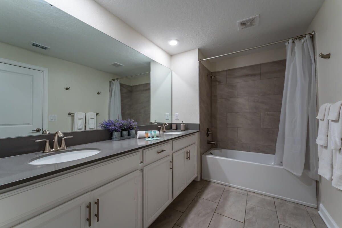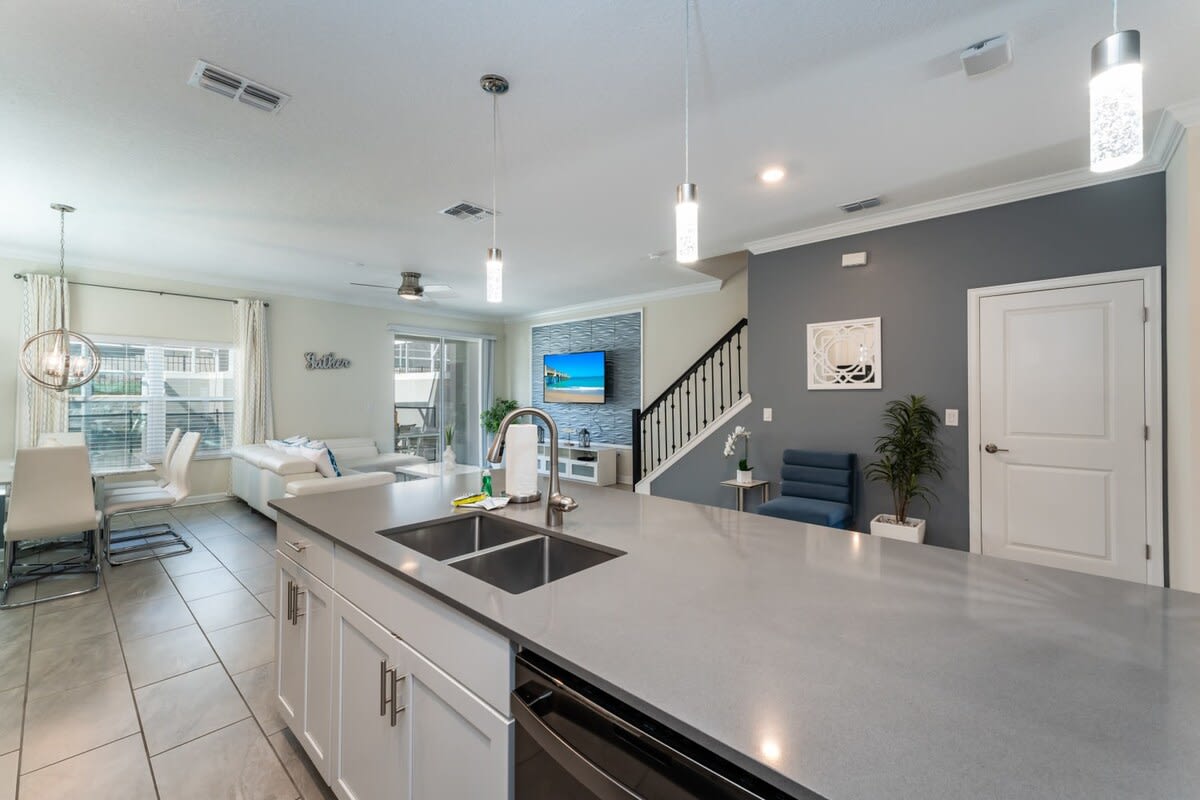 This amazing 5 bedroom luxury townhome is located in the Champion’s Gate Resort. We’ve created the perfect space to live the Disney dream!