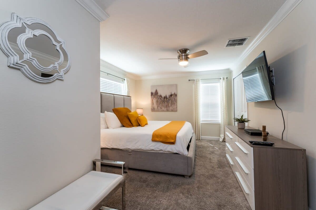 Escape to luxury and relaxation at our 5-bedroom townhome in the heart of Champions Gate. Unwind by your private pool or explore the vibrant amenities of the Oasis club. Perfectly located for exploring Orlando’s thrilling attractions, dining, and shopping, this stylish retreat is your home away from home.