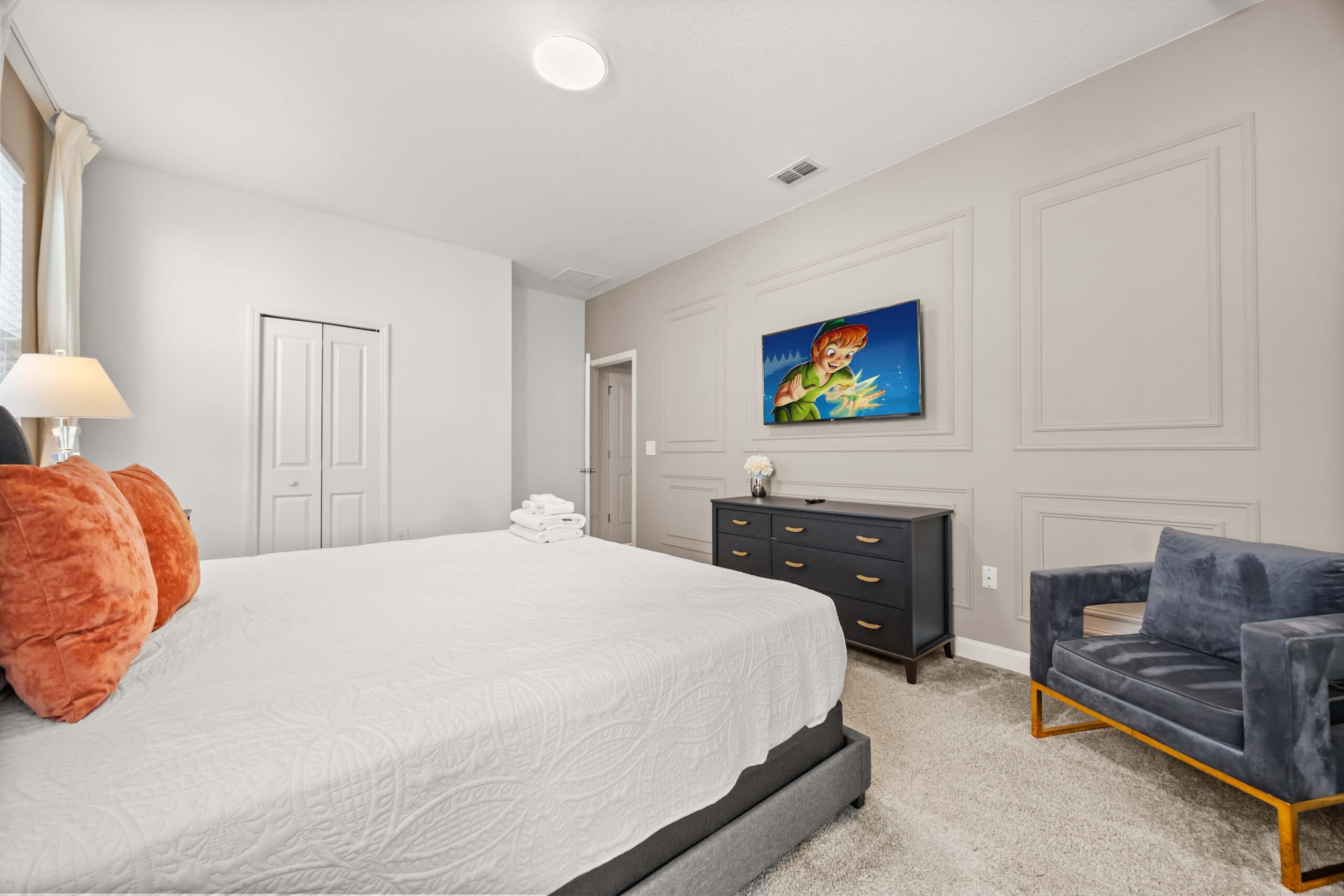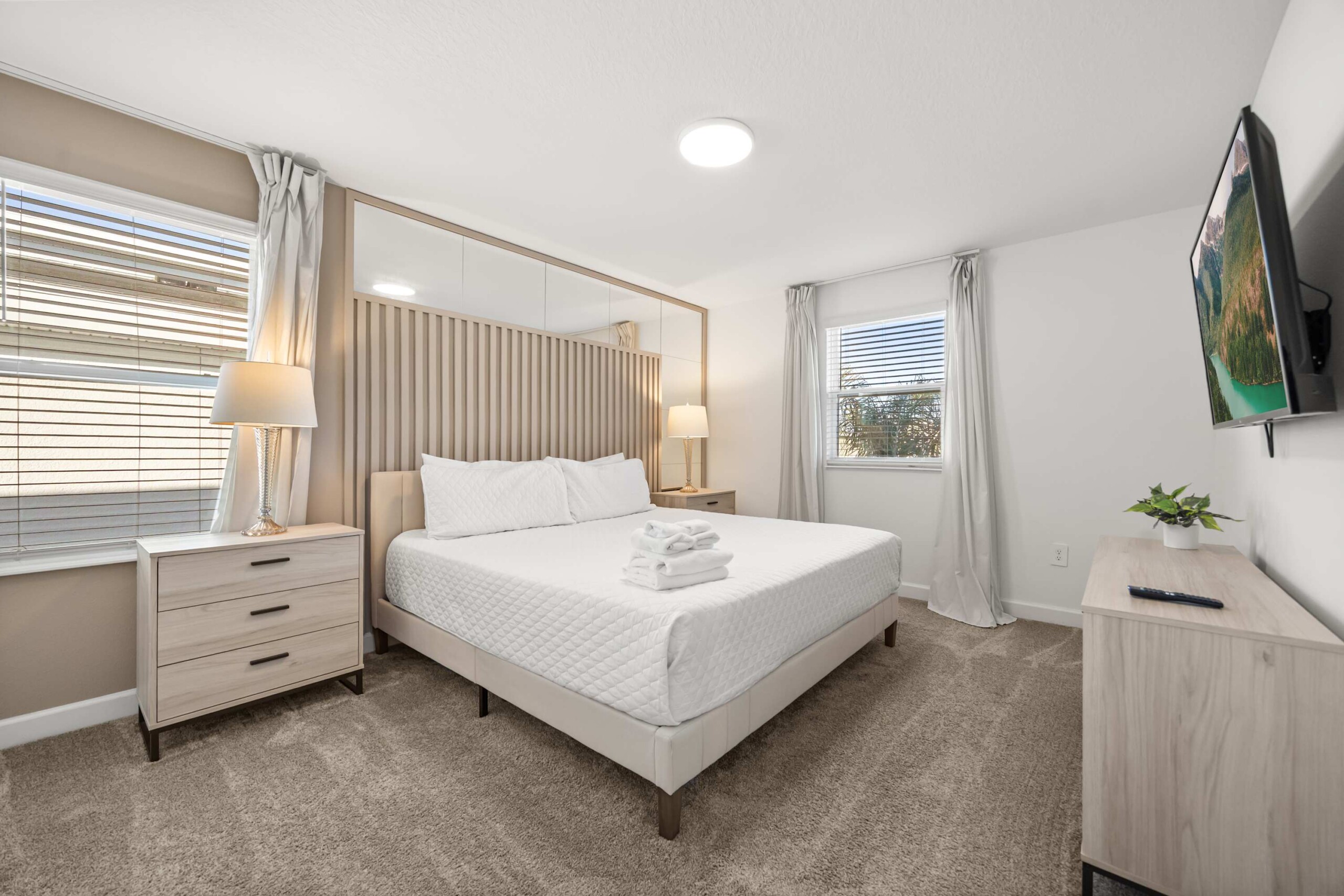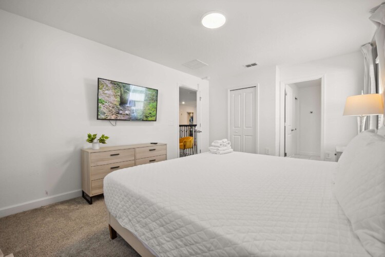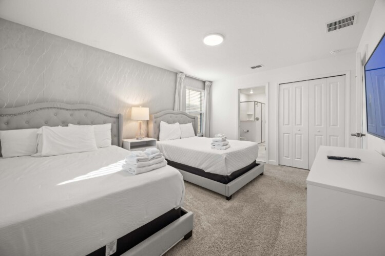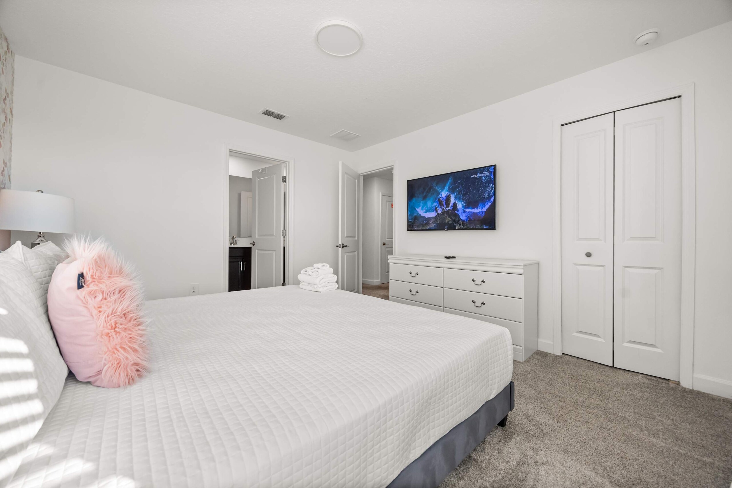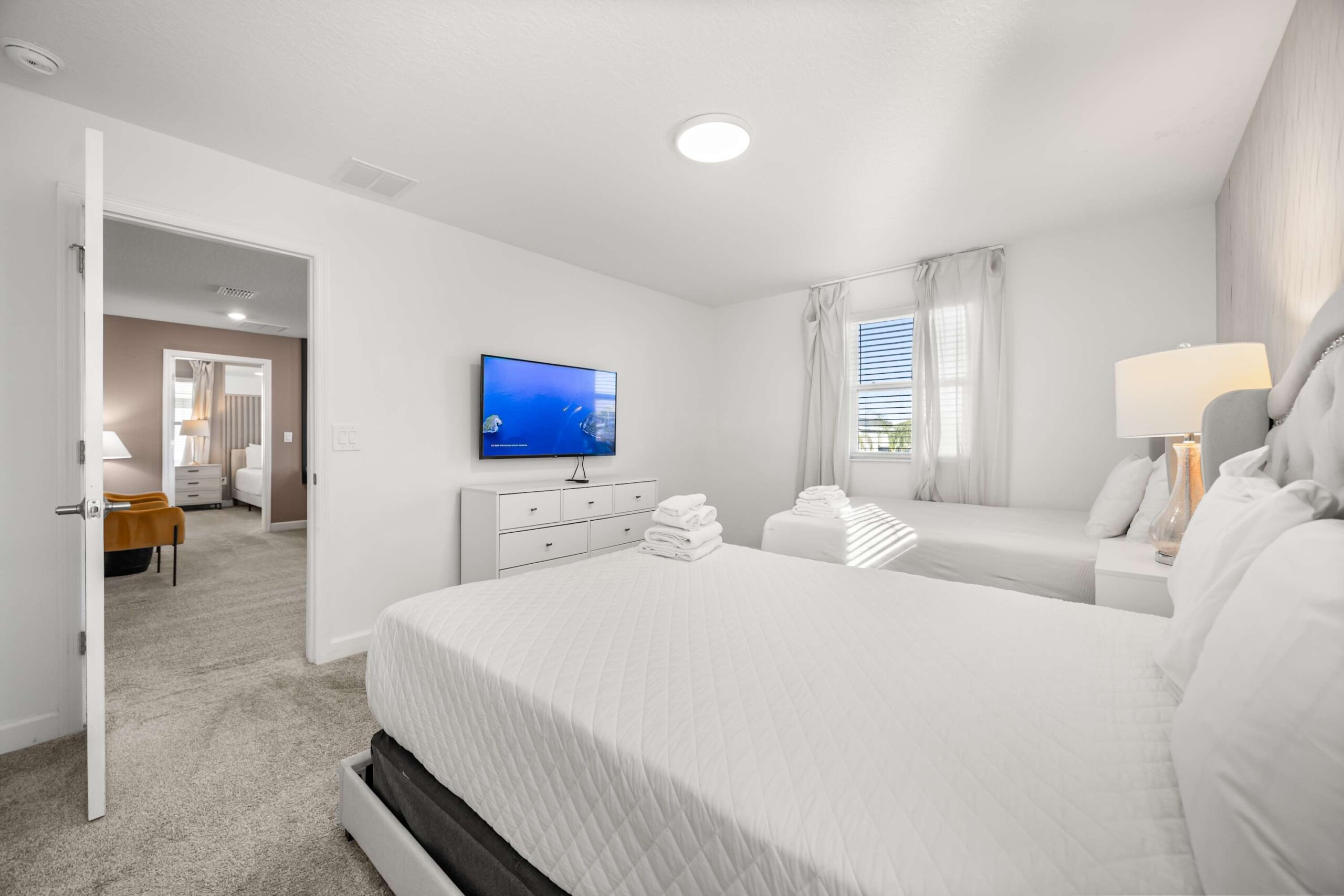 Discover this stunning 7-bedroom, 5-bathroom villa in Davenport, the perfect retreat for groups up to 18 guests. Spacious and elegantly designed, this villa offers a harmonious blend of modern amenities and comfort, featuring air conditioning, cable TV, and a fully equipped kitchen with a dishwasher. Relax in the cozy living spaces or enjoy the convenience of free parking, a washer, and a dryer. Located in a vibrant area, you’re just a short drive from Orlando’s famed attractions. Book now for an unforgettable getaway!
