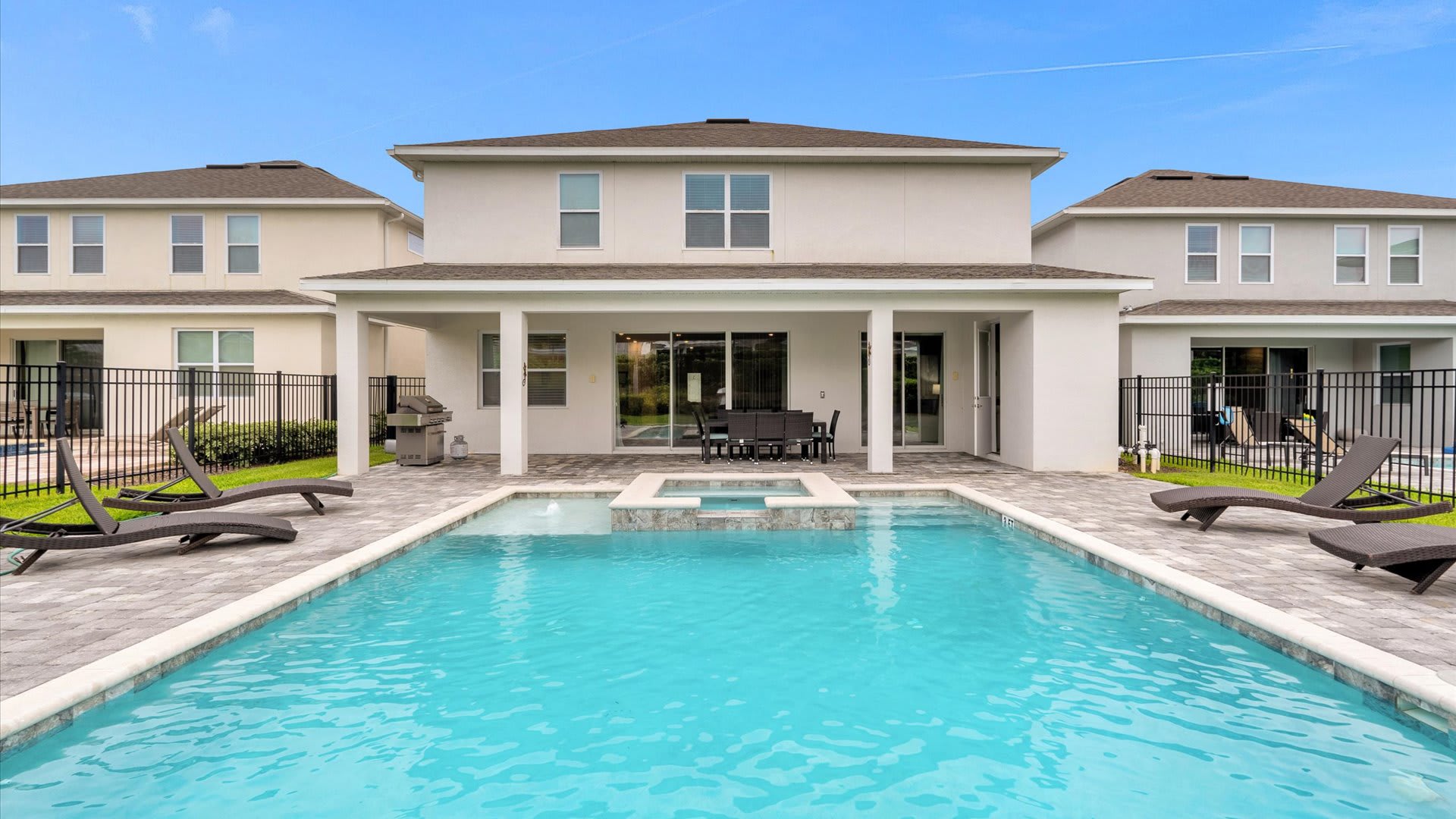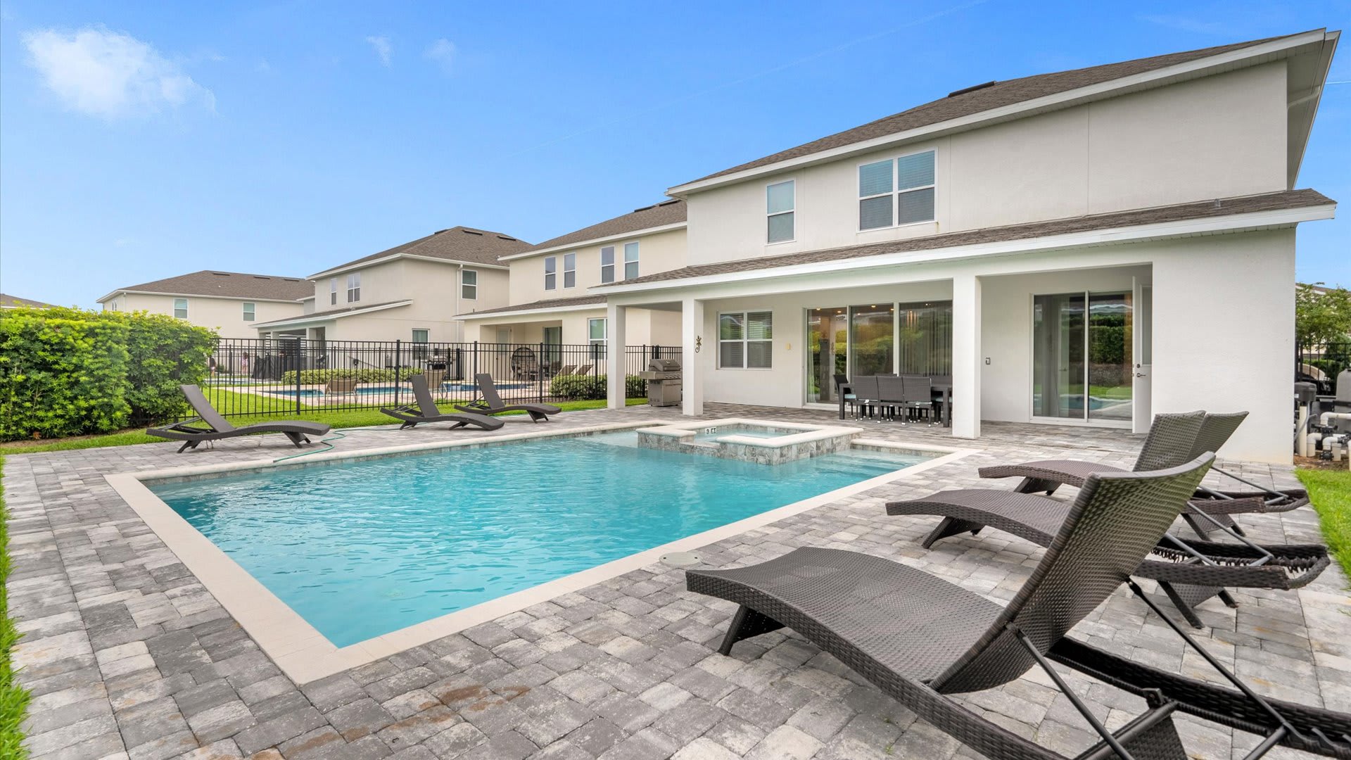 – Private screened in pool plus Jacuzzi, covered lanai and patio furniture