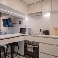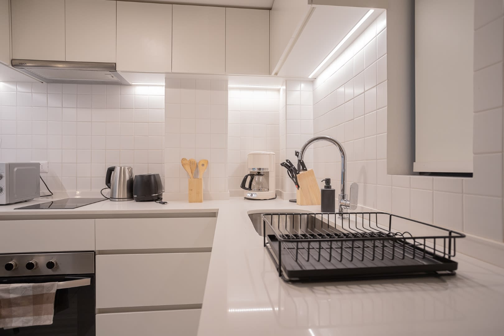 Our apartment has all the amenities to ensure a comfortable stay in Santiago. The kitchen is fully equipped with basic cooking utensils, a two-burner induction cooktop, electric kettle, toaster, and coffee maker so you can cook or prepare snacks at any time. If you’re on a business trip, don’t worry, we offer a high-speed 500 mb internet connection.