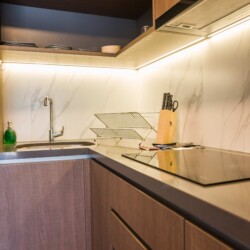 Relax in this bright and sophisticated apartment, thoughtfully designed for your comfort. With two spacious bedrooms featuring king beds, it is perfect for small groups or families seeking a cozy retreat. The fully equipped kitchen allows you to prepare your favorite meals with ease, while the two bathrooms offer privacy and convenience for all guests. After a day of exploration, unwind in the inviting living area, complete with high-speed Wi-Fi access to keep you connected.