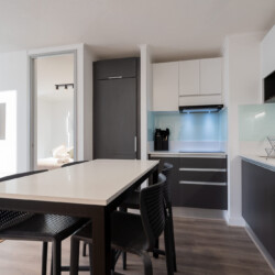 – **Kitchen:** Adjacent to the living space, the fully-equipped kitchen boasts a refrigerator, stove, and all essential cooking amenities, making meal preparation a breeze. The dining area, conveniently located nearby, offers a cozy spot for shared meals.