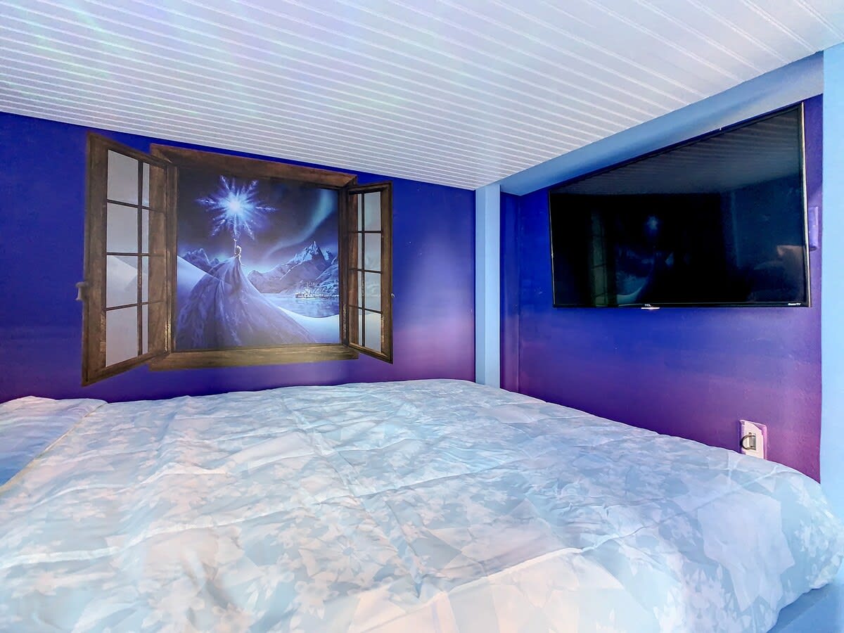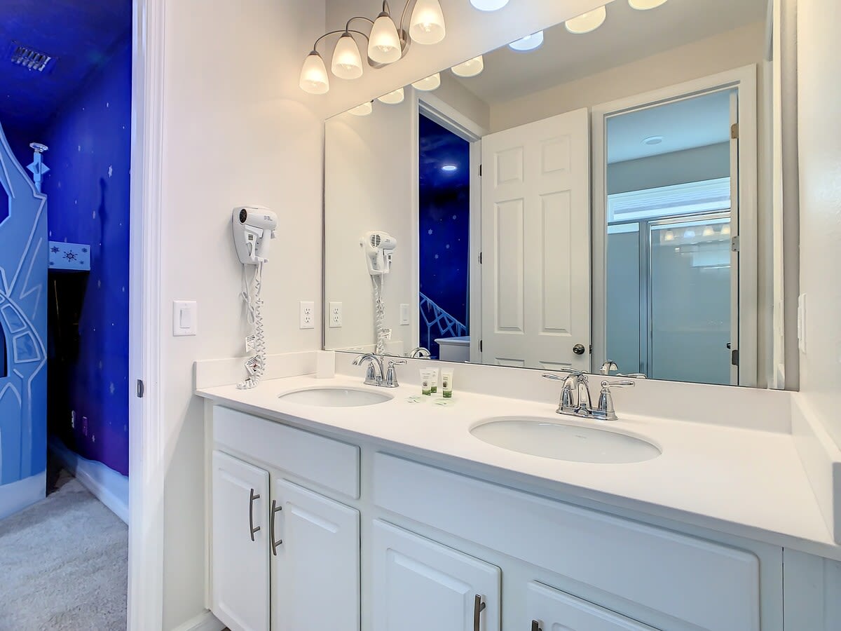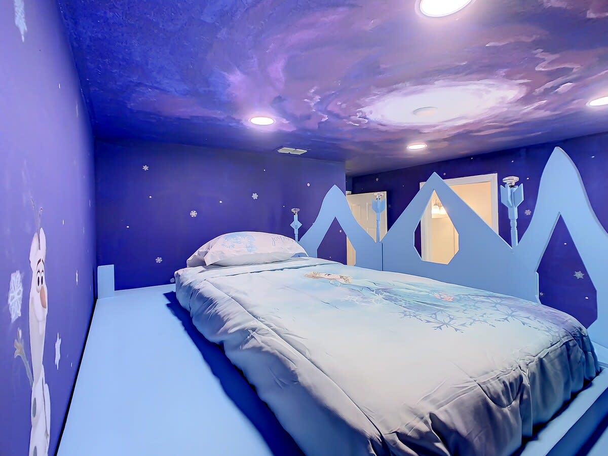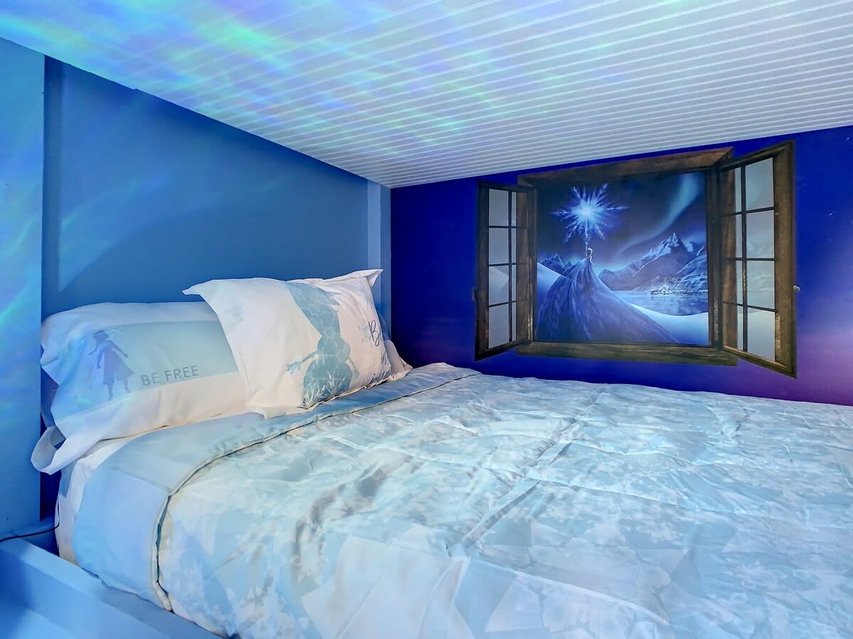 This amazing 6 bedroom luxury home is located inside the Solara Resort. We’ve created the perfect space to live the Disney dream! We brought Frozen to life, this amazing room has a twin bed over a full bed, it is a MAGIC bedroom for kids. You can also take a trip to Hogwarts from our express platform 9 3/4. There is no age limit to enjoy our Harry Potter-themed room.