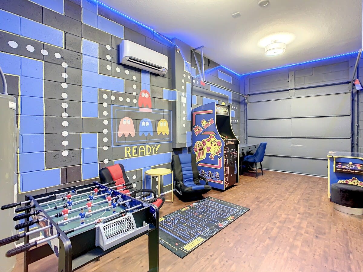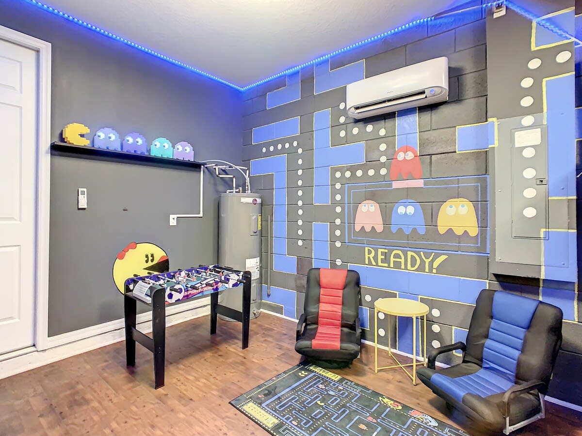 The gamer room is air-conditioned and INCREDIBLE. It is equipped with a Multi arcade machine, foosball table and a Play Station console.