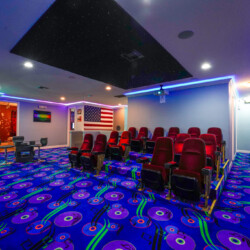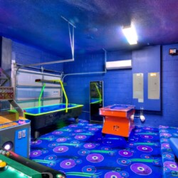 With your own private two-lane bowling alley, you won’t even want to leave home. Other games include pool table, air hockey table, basketball hoops, water truck, arcade games, etc.