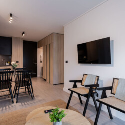 This beautifully designed apartment offers the perfect blend of comfort and style. It features two spacious bedrooms and two full bathrooms, ideal for families or groups. The open-concept living area invites relaxation and entertainment with its cozy atmosphere. The fully equipped kitchen makes meal preparation easy. Enjoy the outdoor space, perfect for relaxing or gathering with friends. Located on the third floor with elevator access, the apartment offers the following features: