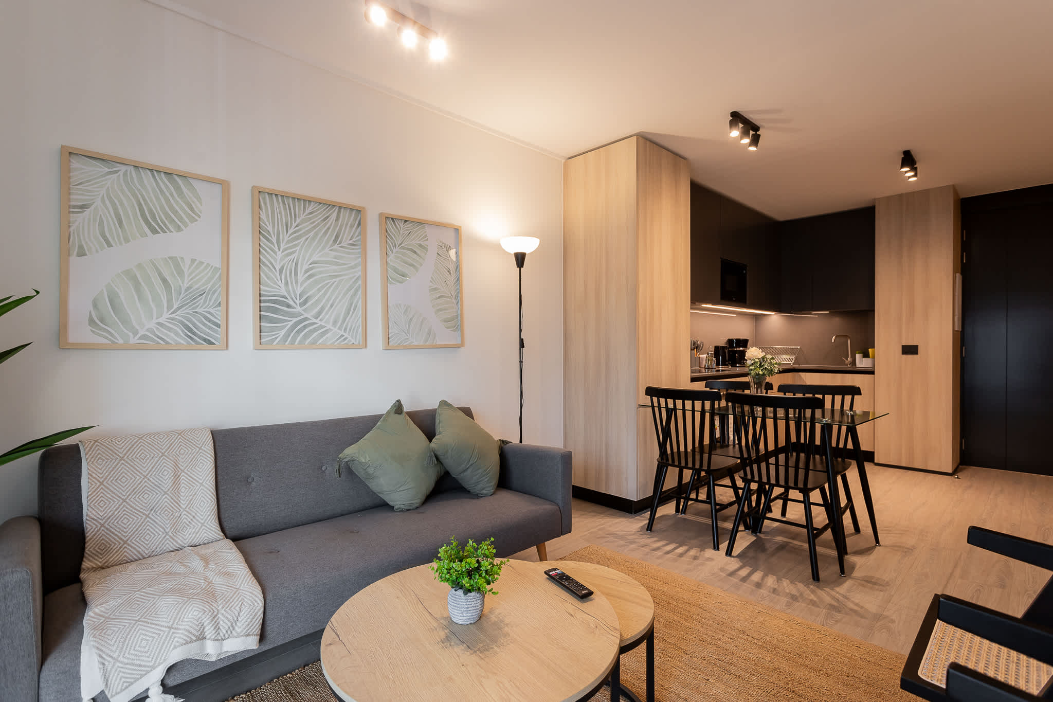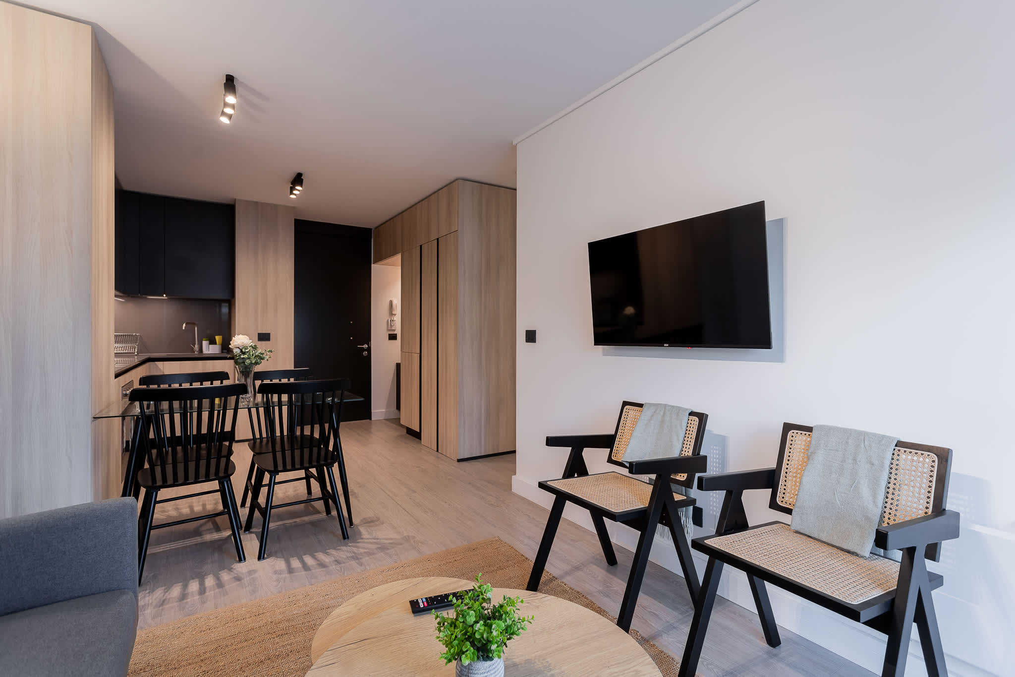 • Shared Space: Living room with sofa and TV.
