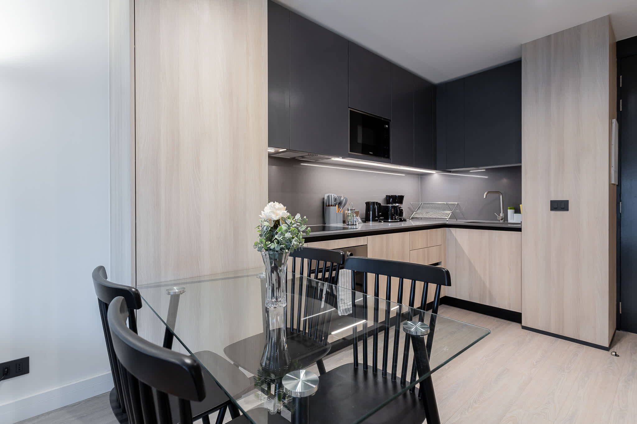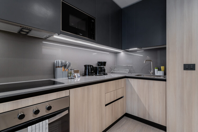 • Kitchen: Fully equipped with modern appliances, including dishwasher, oven, and microwave, to prepare your favorite meals.