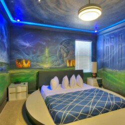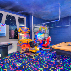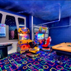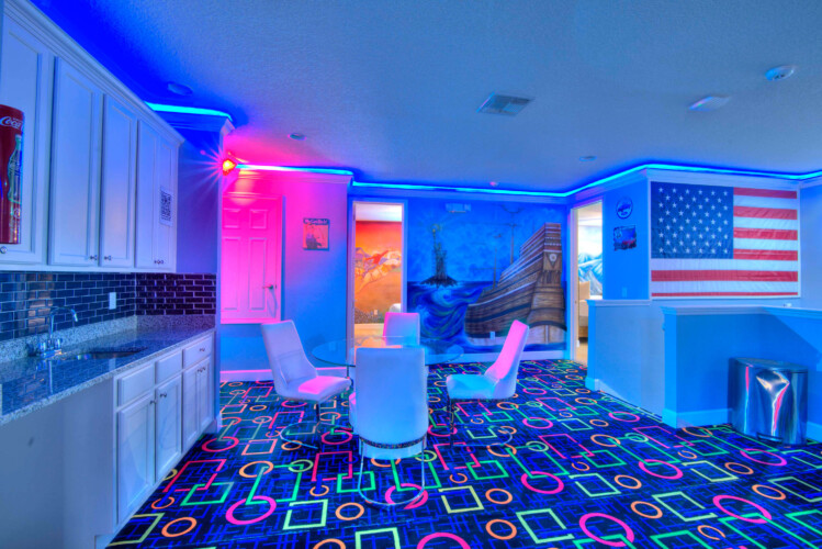 The bedrooms feature 14 famous American landmarks, along with 14.5 bathrooms. You will be amazed from the moment you walk through the doors making you feel like you are traveling on a scenic journey across America the beautiful. This premier home is soon to become a Landmark of its own! This magnificent 6750 sq. ft dream home has features unlike anything you have seen before. All bedrooms are custom-built and finished with the finest touches. With your own private two-lane bowling alley, you wonβt even want to leave home. Other games include air hockey table, basketball hoops, pac ball, neo ball, epic arcade games, etc. The living room features 4K 200inch projector TV screen. The America-themed rooms take you on a journey to marvel at places like Las Vegas, Washington DC, and much much more. The Washington D.C., Las Vegas, and New York rooms are on the first floor. The house has 12 king beds and 2 kidsβ rooms with full-over-full bunks x 2 per kid room. All bedrooms have flat screen TVs. There is a full-laundry room on each floor. There is plenty of open space for group gatherings (living room), with a massive Kitchen Island with additional chairs for the group to enjoy quality meals together. The Kitchen is fully equipped for the most discerning chef.