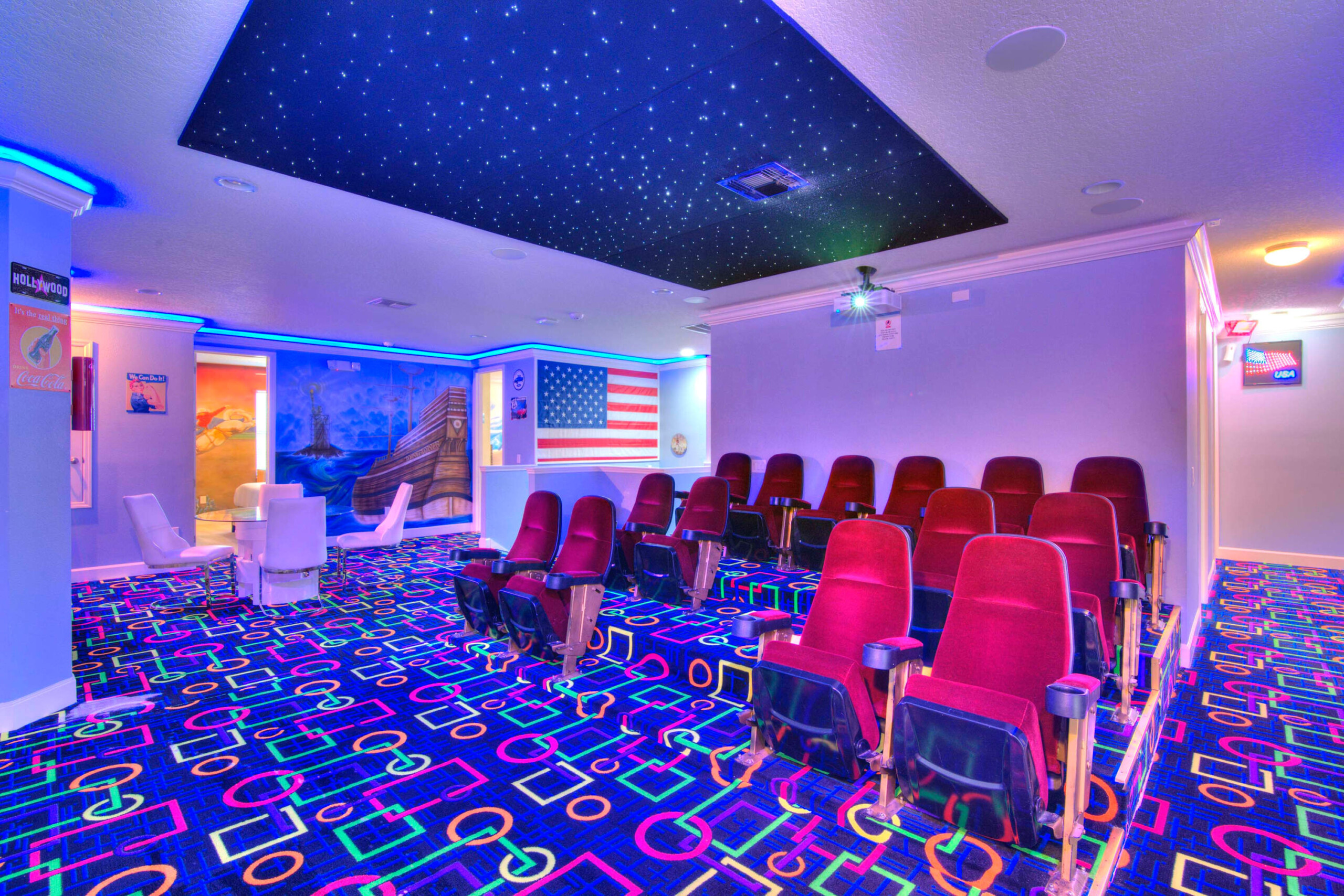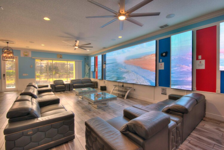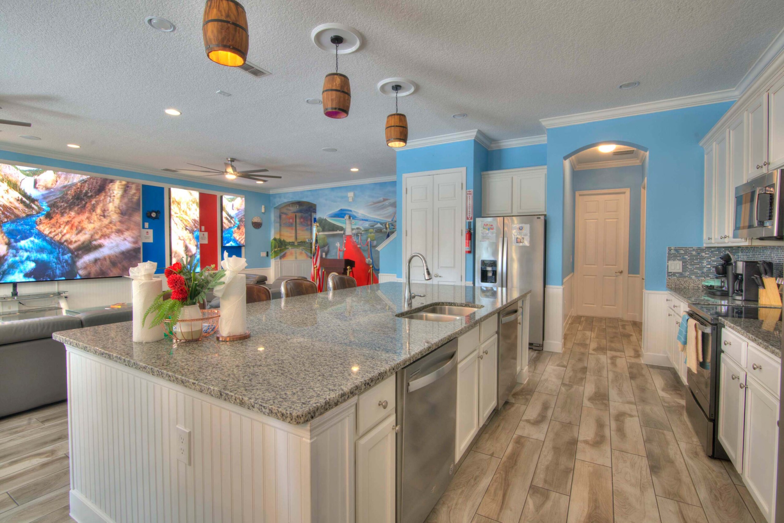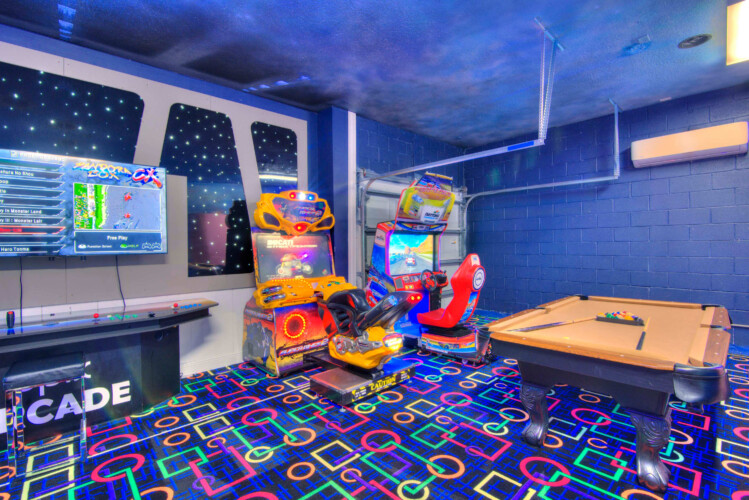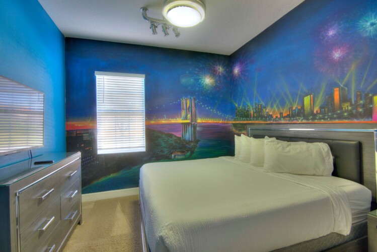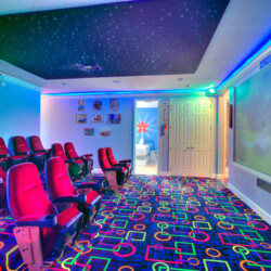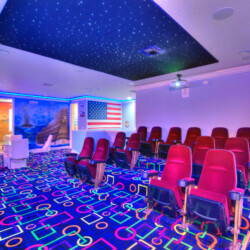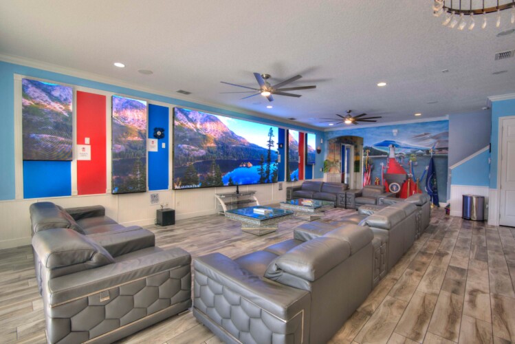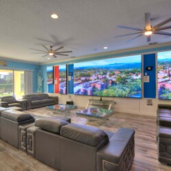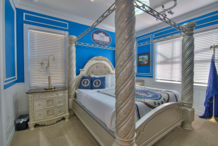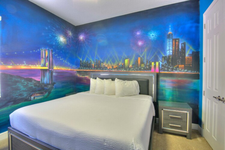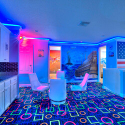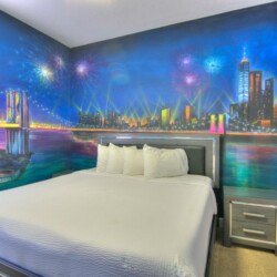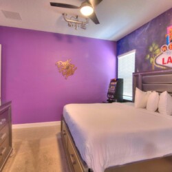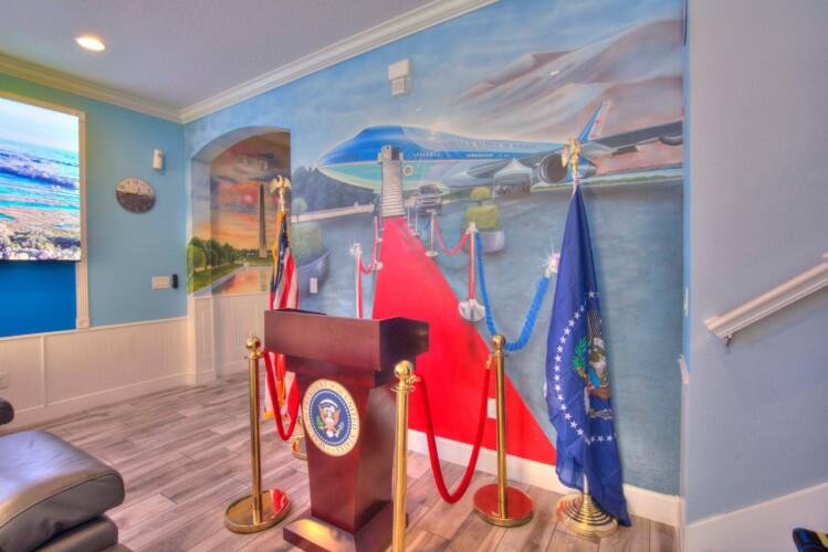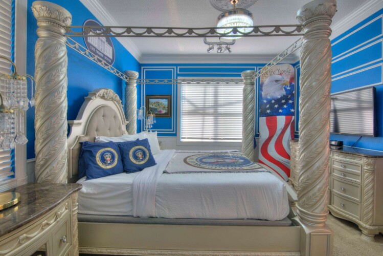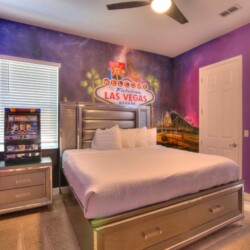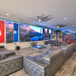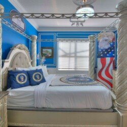 The bedrooms feature 14 famous American landmarks, along with 14.5 bathrooms. You will be amazed from the moment you walk through the doors making you feel like you are traveling on a scenic journey across America the beautiful. This premier home is soon to become a Landmark of its own! This magnificent 6750 sq. ft dream home has features unlike anything you have seen before. All bedrooms are custom-built and finished with the finest touches. With your own private two-lane bowling alley, you won’t even want to leave home. Other games include air hockey table, basketball hoops, pac ball, neo ball, epic arcade games, etc. The living room features 4K 200inch projector TV screen. The America-themed rooms take you on a journey to marvel at places like Las Vegas, Washington DC, and much much more. The Washington D.C., Las Vegas, and New York rooms are on the first floor. The house has 12 king beds and 2 kids’ rooms with full-over-full bunks x 2 per kid room. All bedrooms have flat screen TVs. There is a full-laundry room on each floor. There is plenty of open space for group gatherings (living room), with a massive Kitchen Island with additional chairs for the group to enjoy quality meals together. The Kitchen is fully equipped for the most discerning chef.
