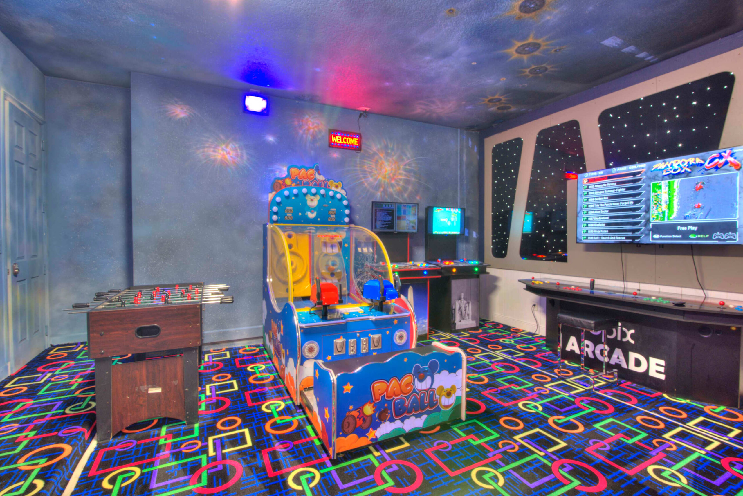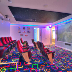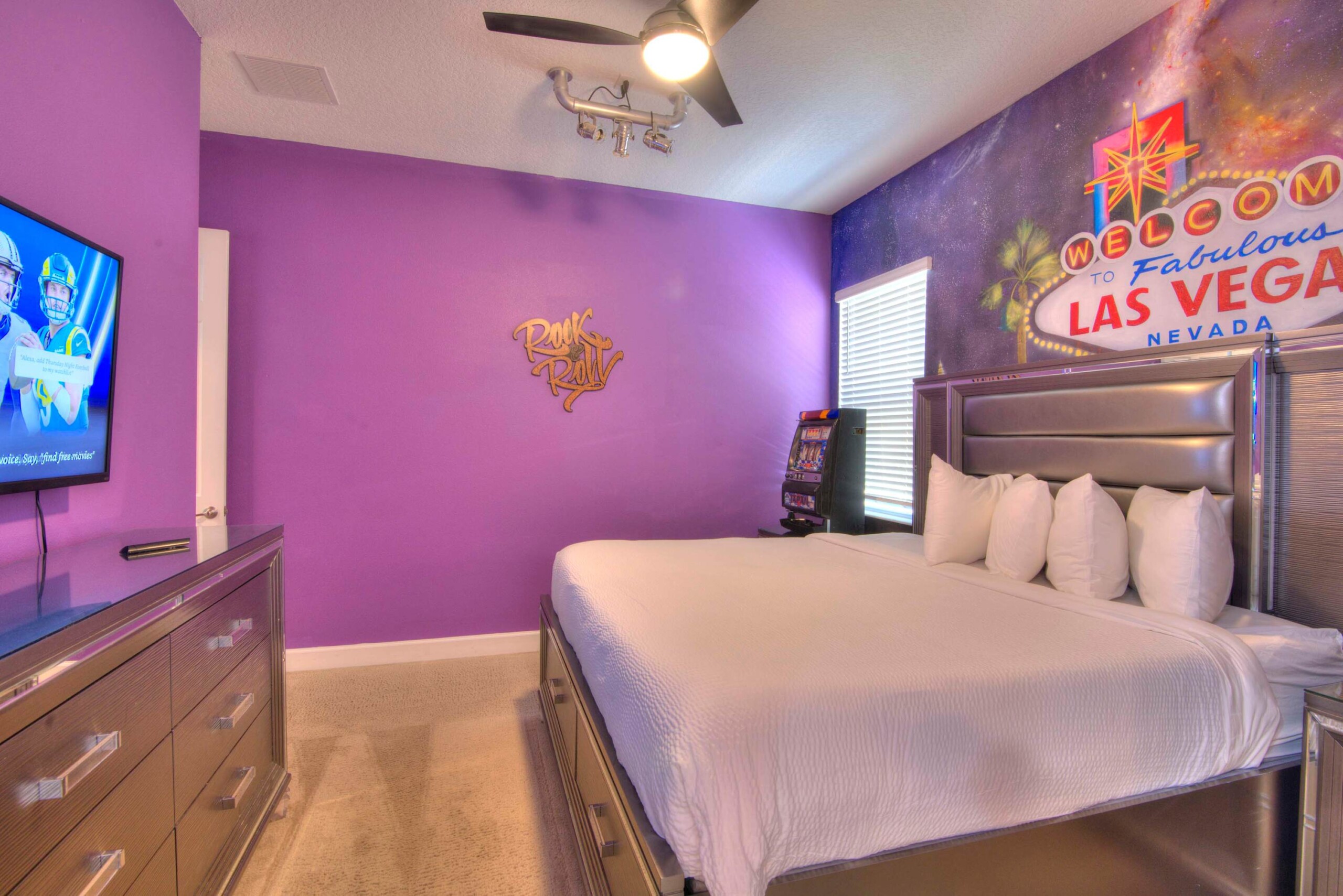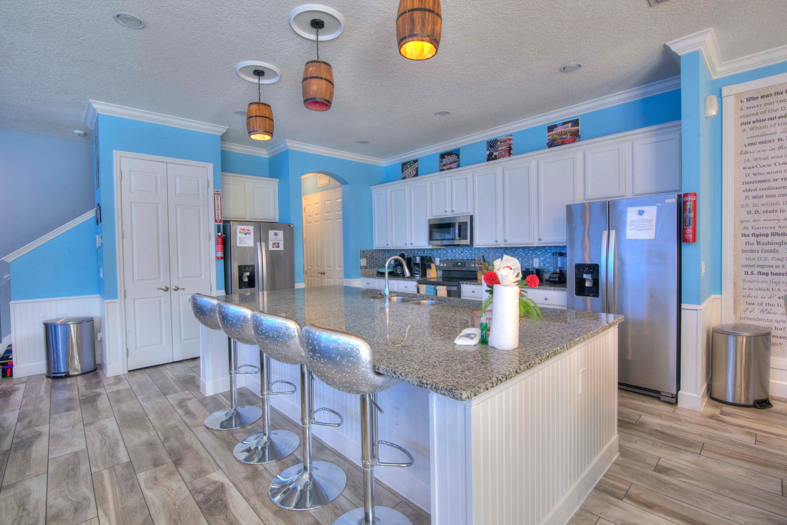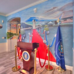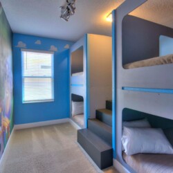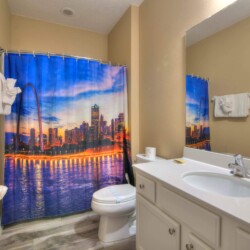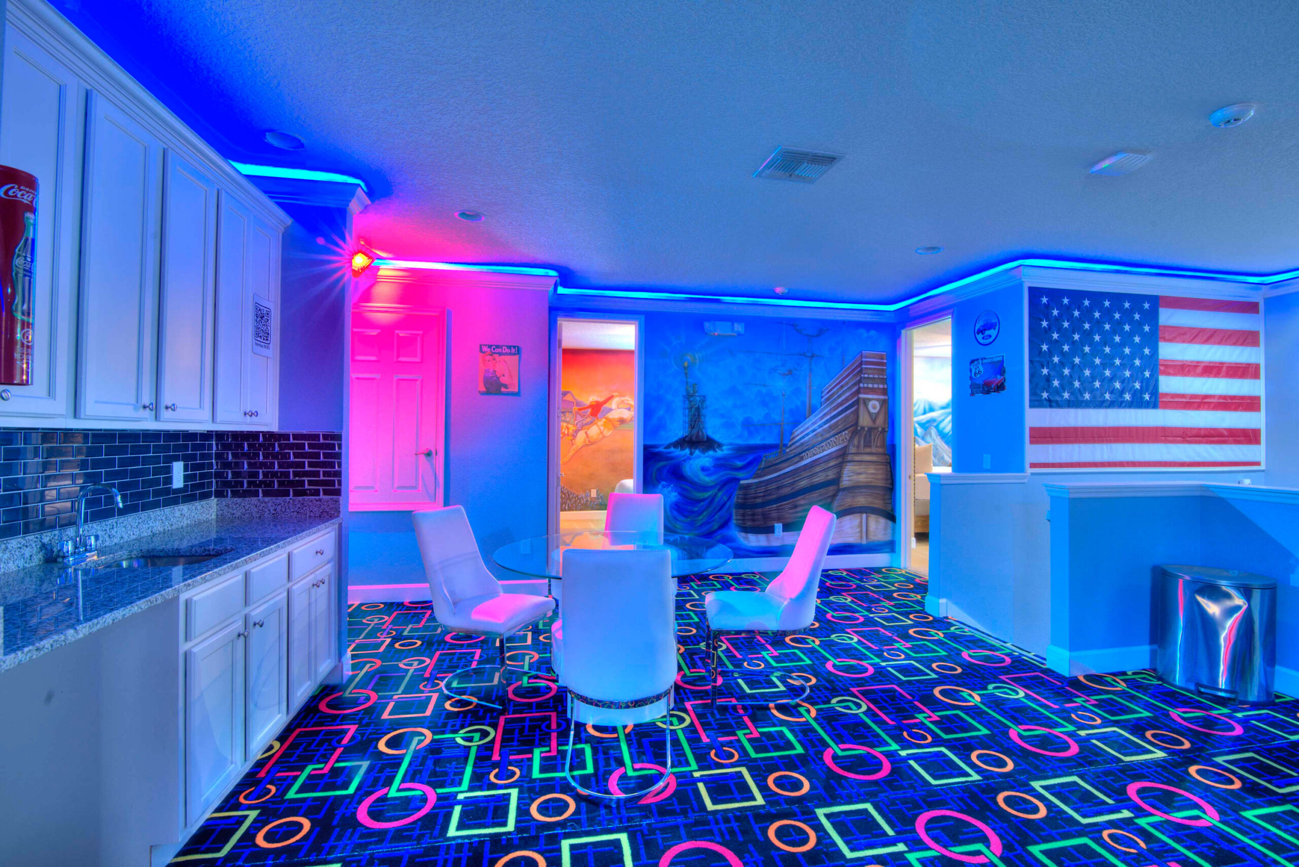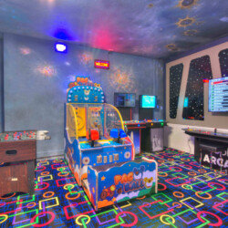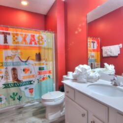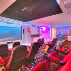 The bedrooms feature 14 famous American landmarks, along with 14.5 bathrooms. You will be amazed from the moment you walk through the doors making you feel like you are traveling on a scenic journey across America the beautiful. This premier home is soon to become a Landmark of its own! This magnificent 6750 sq. ft dream home has features unlike anything you have seen before. All bedrooms are custom-built and finished with the finest touches. With your own private two-lane bowling alley, you won’t even want to leave home. Other games include air hockey table, basketball hoops, pac ball, neo ball, epic arcade games, etc. The living room features 4K 200inch projector TV screen. The America-themed rooms take you on a journey to marvel at places like Las Vegas, Washington DC, and much much more. The Washington D.C., Las Vegas, and New York rooms are on the first floor. The house has 12 king beds and 2 kids’ rooms with full-over-full bunks x 2 per kid room. All bedrooms have flat screen TVs. There is a full-laundry room on each floor. There is plenty of open space for group gatherings (living room), with a massive Kitchen Island with additional chairs for the group to enjoy quality meals together. The Kitchen is fully equipped for the most discerning chef.