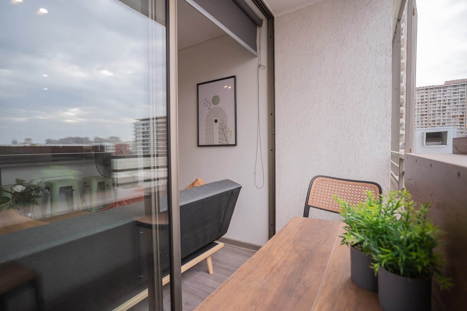 A unique accommodation for a peaceful and relaxing stay in Santiago. During your stay, you can enjoy our seasonal pool, open from December to March. We also have a barbecue area and a multipurpose room, available for an additional cost, as well as a coworking space. Excellent location, just steps from Irarrázabal Metro, close to iconic places like the National Stadium and the vibrant Plaza Ñuñoa, where you can enjoy a variety of dining and cultural options.