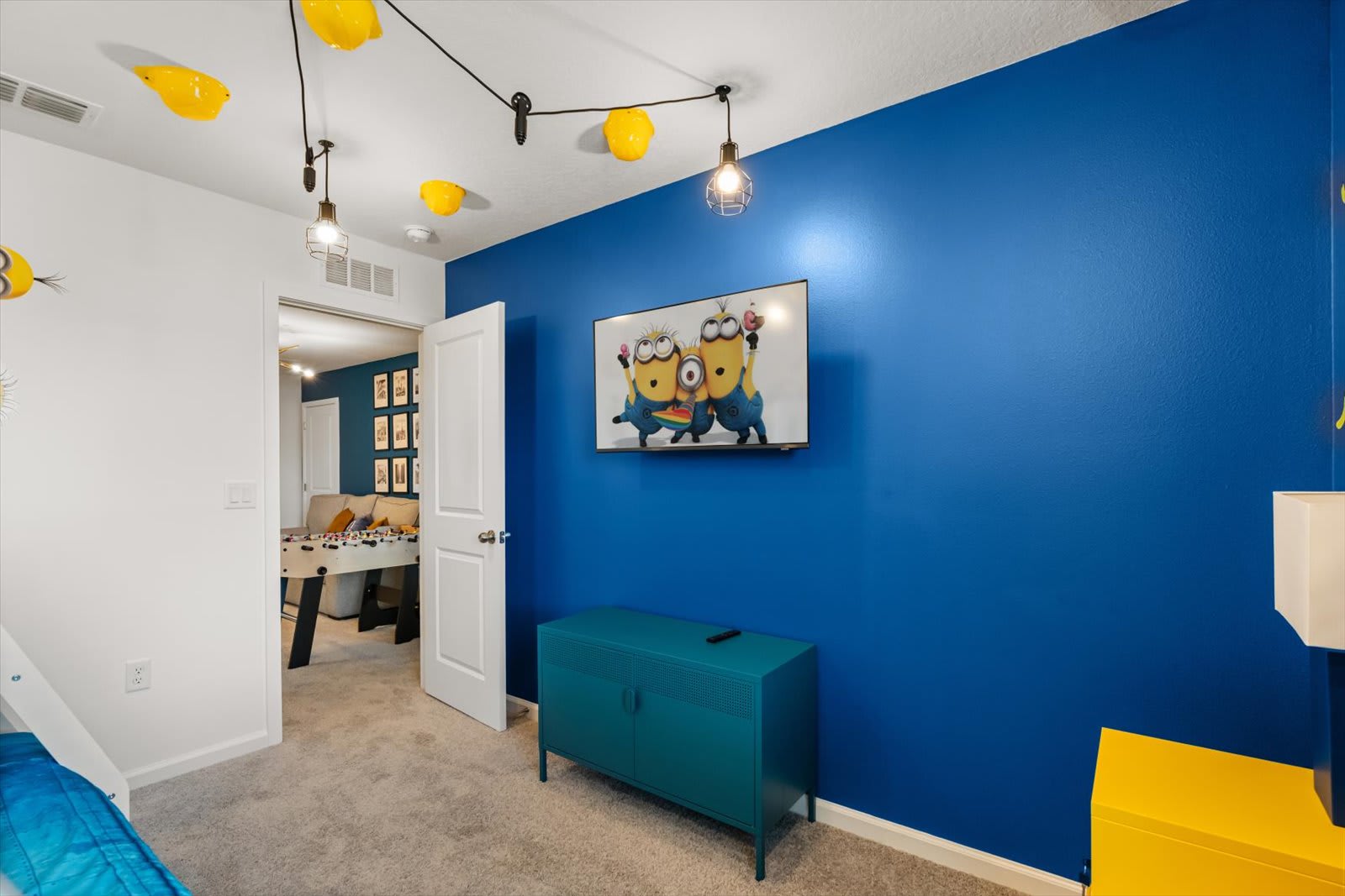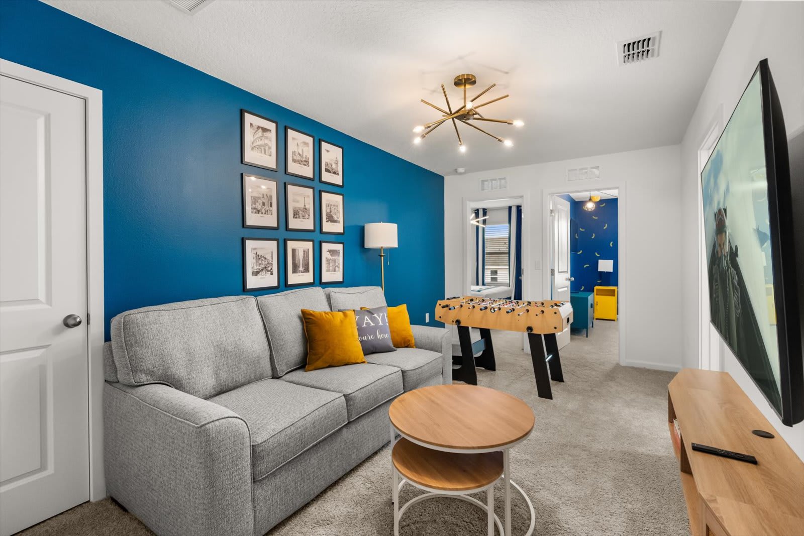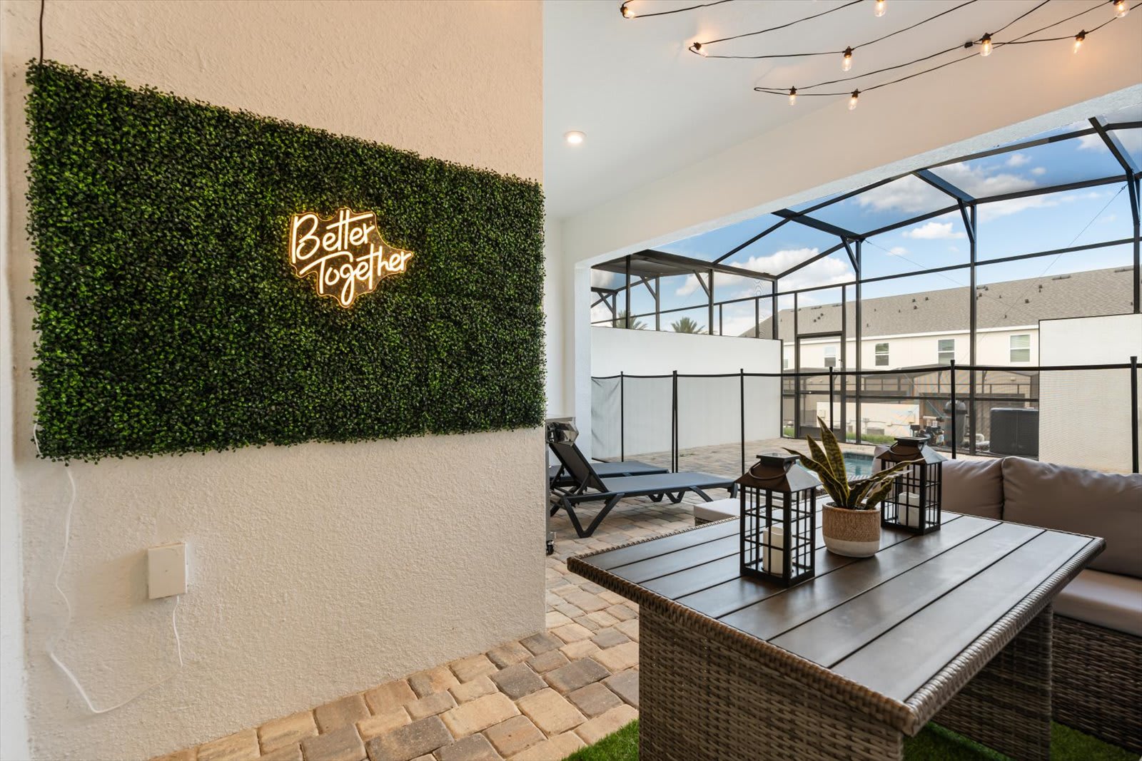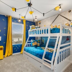 Step into a world of comfort and style in our Kissimmee villa, designed for relaxation and fun. The open-concept layout seamlessly connects the living room, dining area, and fully equipped kitchen, perfect for family gatherings. Enjoy the loft living room, featuring a large smart TV for entertainment. Retreat to four inviting bedrooms: a master suite with a queen bed and private bath, a king bed room, another with a queen, and a playful room with a trundle, twin, and full bed. Key amenities include air conditioning, a BBQ grill, and a private screened pool with a covered lanai. Unwind in style with plush bed linens, cable TV, and a coffee maker for your morning brew.