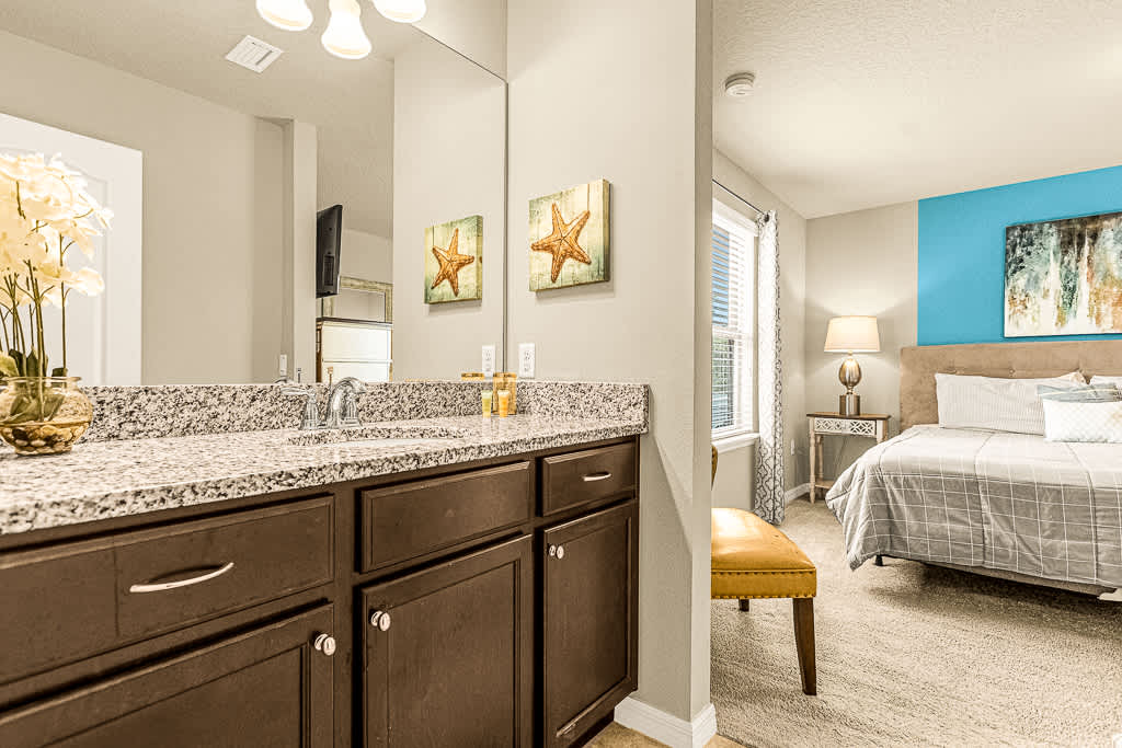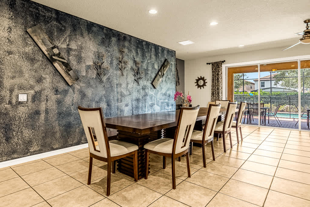 Step into this expansive Kissimmee villa, where elegance meets practicality, designed to comfortably host up to 18 guests. The open-concept layout seamlessly connects the living, dining, and kitchen areas, creating a harmonious flow perfect for socializing and relaxation.