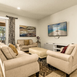 – **Living Room**: Sink into plush seating while enjoying a movie night on the large flat-screen TV, set against a backdrop of tasteful modern decor.