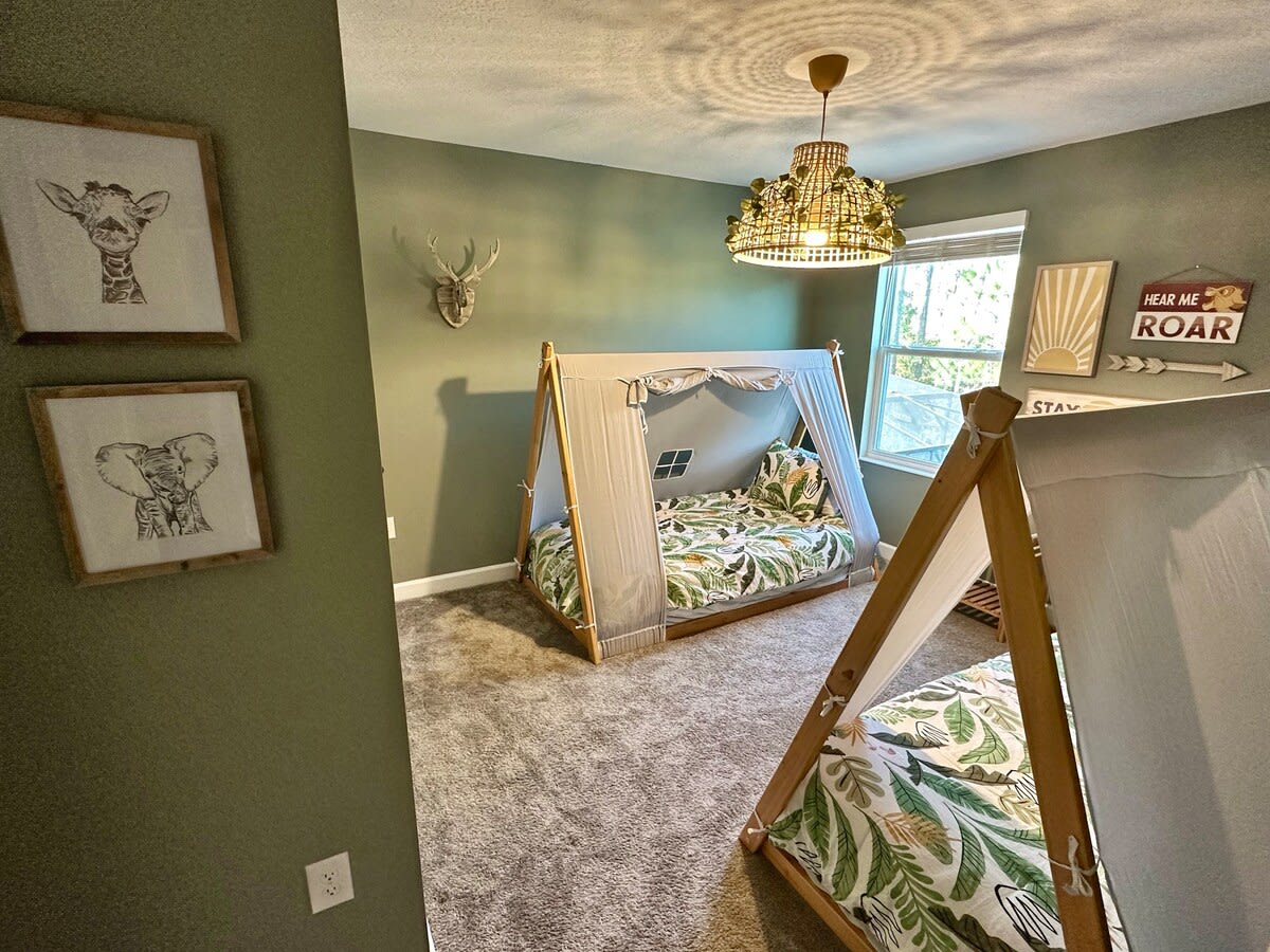 Bedroom 3 β Queen bed, shared bathroom with shower w/ Princess room