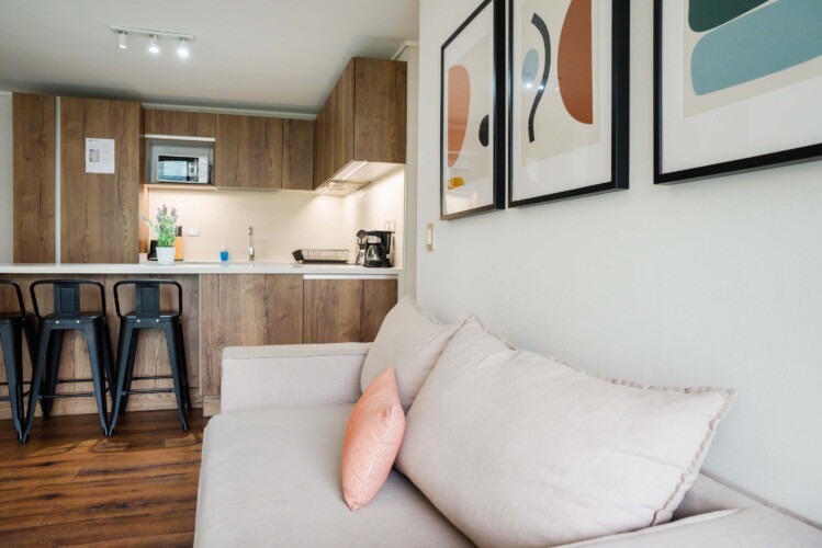 The apartment is fully furnished and equipped, offering everything you need to feel at home. It includes a Smart TV and WiFi to ensure a comfortable and unforgettable stay. The kitchen is well-equipped with a microwave, refrigerator, electric kettle, toaster, and basic cooking utensils for preparing meals or snacks at any time.