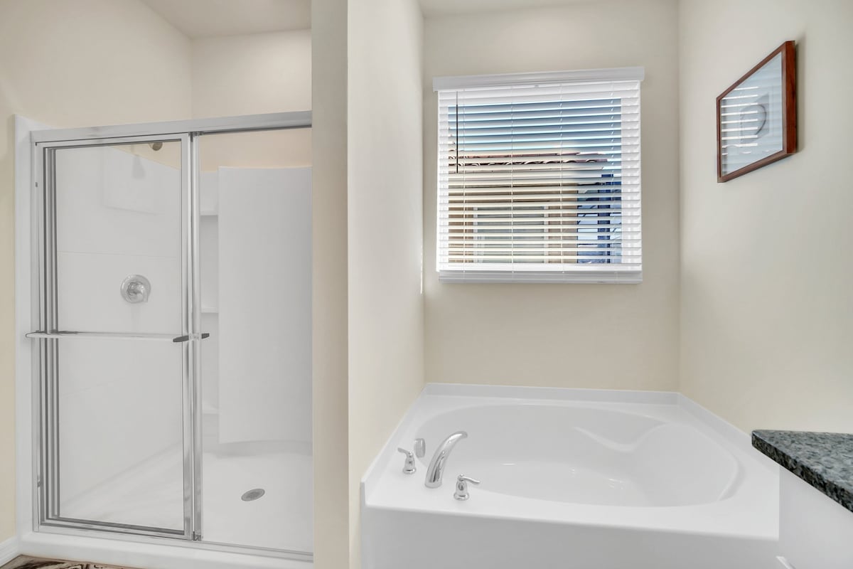 We’d love to welcome you to our luxurious 7-bedroom villa in the breathtaking Solterra Resort! Located in Davenport, just minutes from Orlando’s top attractions like Disney World and ESPN Wide World of Sports, this villa offers everything you need for a magical stay. Dive into your private pool, enjoy the game room, explore the theme rooms, and unwind at “The Grand Clubhouse.”