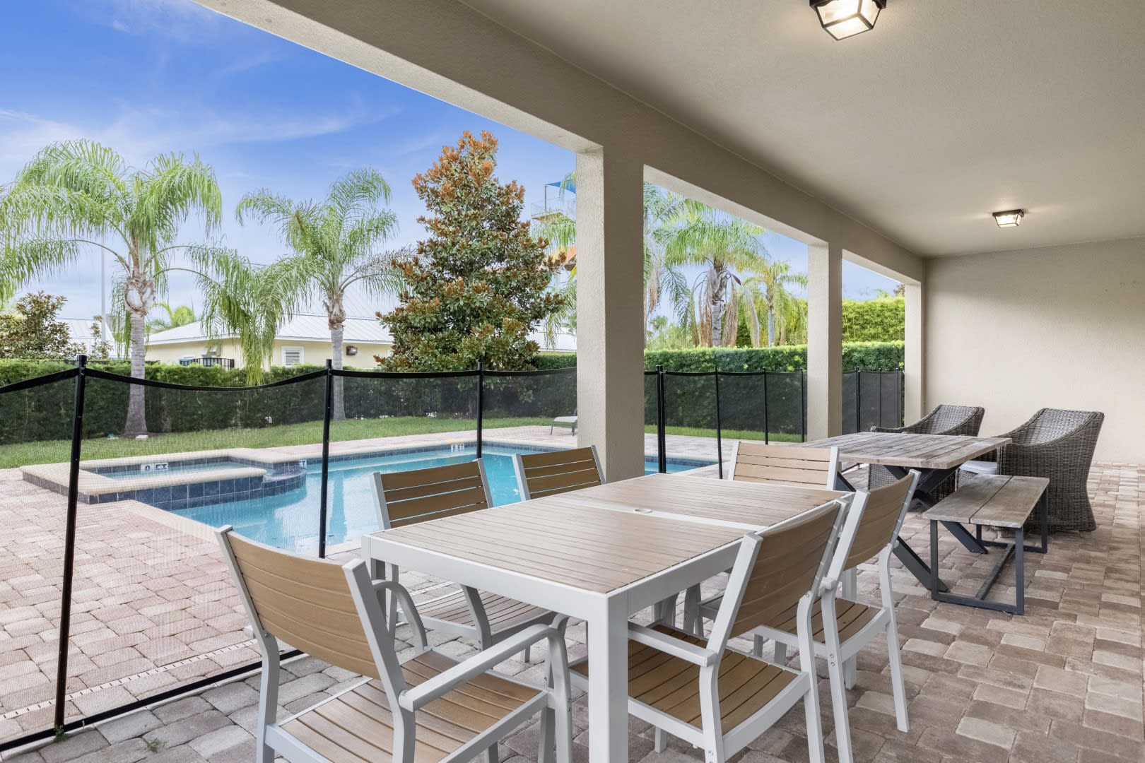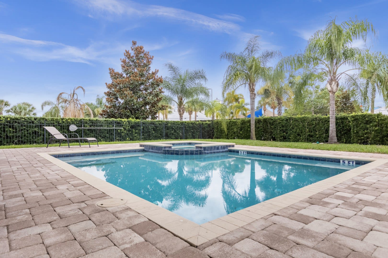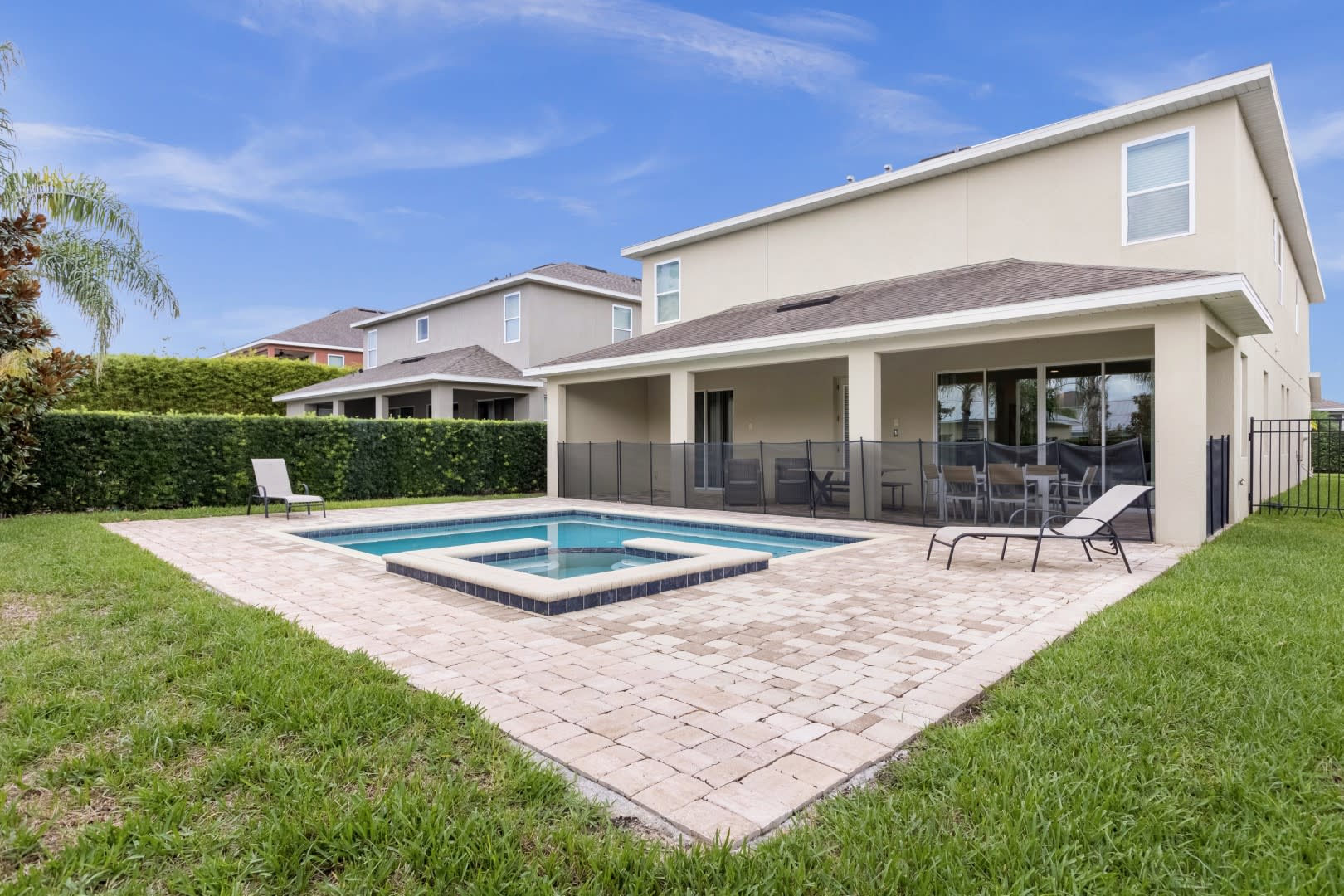 – Private screened in pool plus Jacuzzi, covered lanai and patio furniture