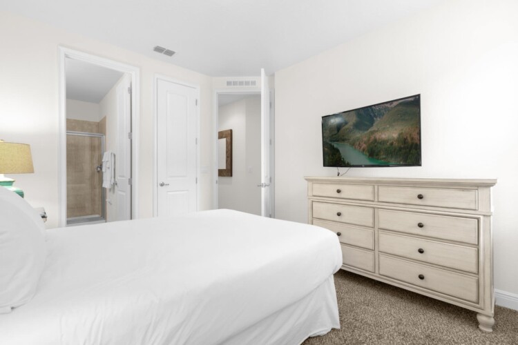 – Bedroom #3: 1 King Bed, flat screen TV.