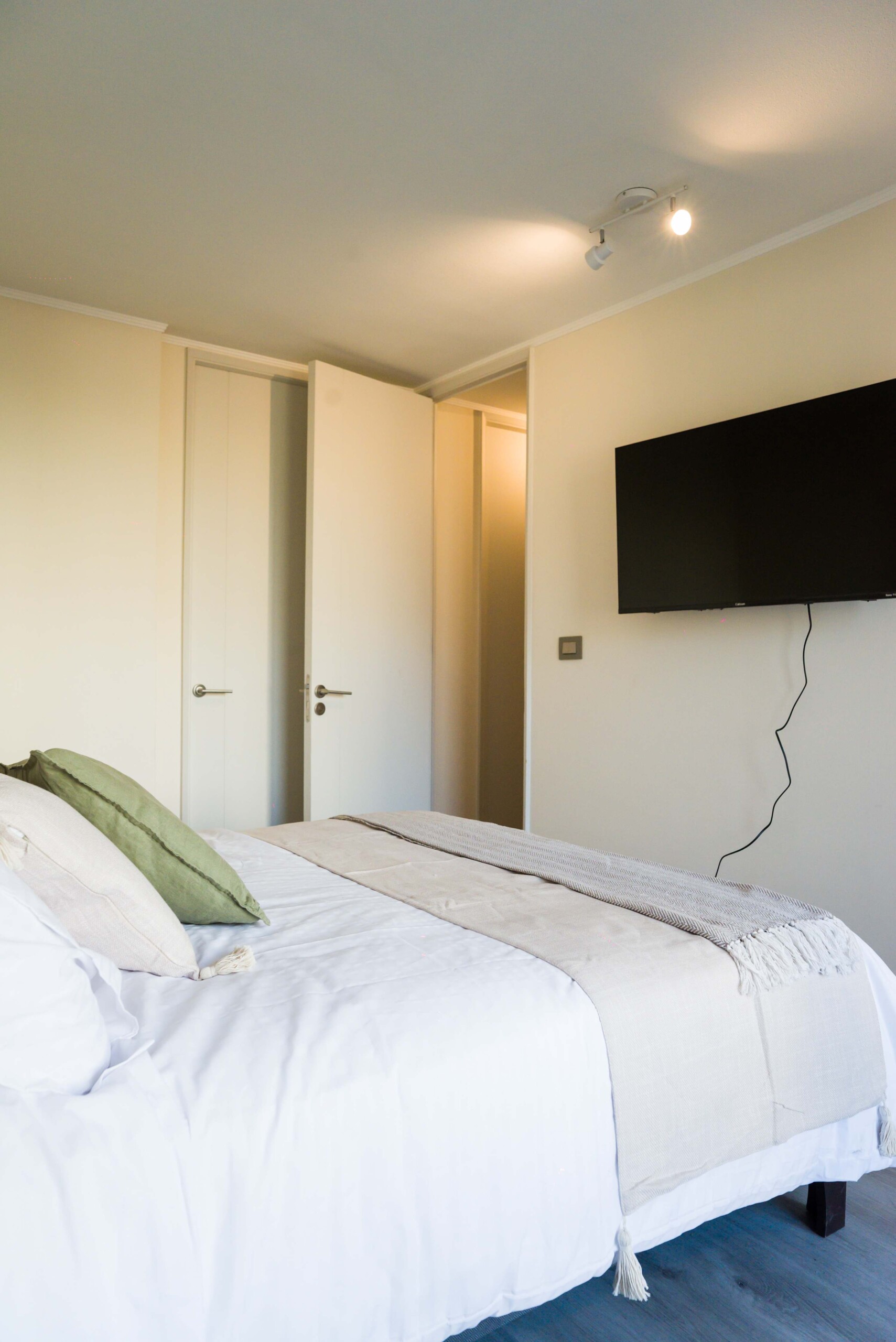 – **Living Area**: Bright and airy, featuring a cozy sofa and a flat-screen TV, perfect for relaxation.