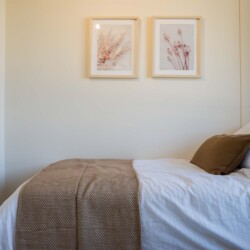 – **Bedrooms**: The master bedroom offers a plush double bed, while the second bedroom includes two single beds. An additional guest can be accommodated on the living room sofa.