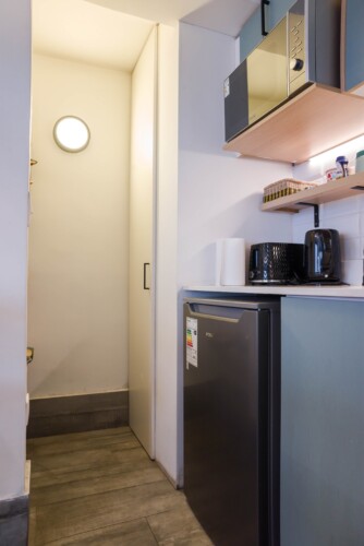 The studio’s contemporary design and thoughtful amenities create a welcoming retreat, ensuring a memorable stay in the heart of Providencia.