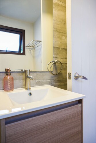 – **Bathroom**: Refresh in the sleek bathroom, complete with hot water and a hair dryer for your grooming needs.