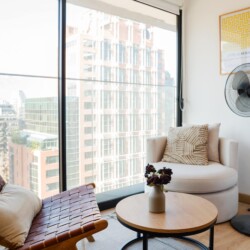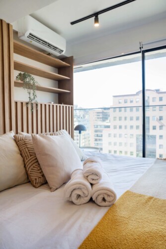 Welcome to our fully furnished apartment, designed for your ultimate comfort and convenience. Our Studio bedroom features a cozy double bed adorned with fresh, crisp linens, ensuring a restful night’s sleep. The full bathroom is stocked with plush towels, providing a touch of luxury during your stay.