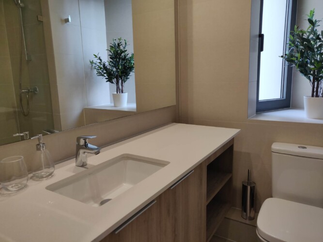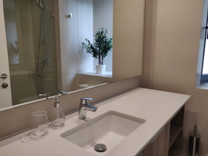 – **Bathrooms**: Two sleek, modern spaces for convenience.