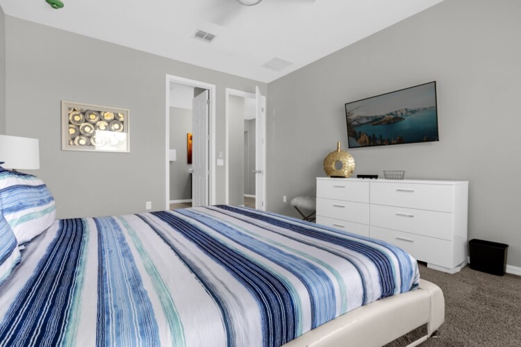 – Bedroom 1: Master with King Bed, 50″ flat screen TV