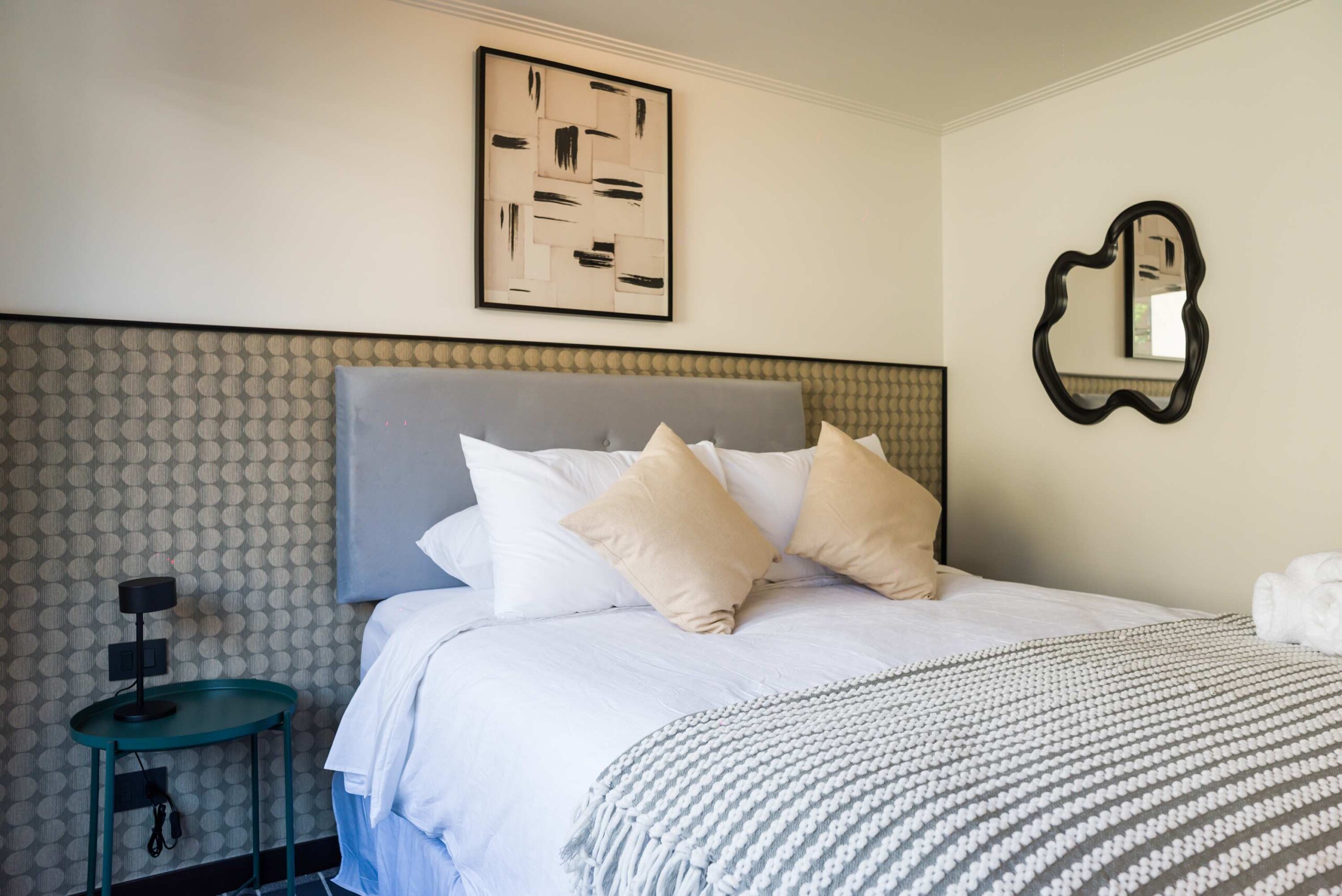– **Bedrooms**: Two serene rooms; one with a queen bed, the other with a double and single bed, all with plush linens