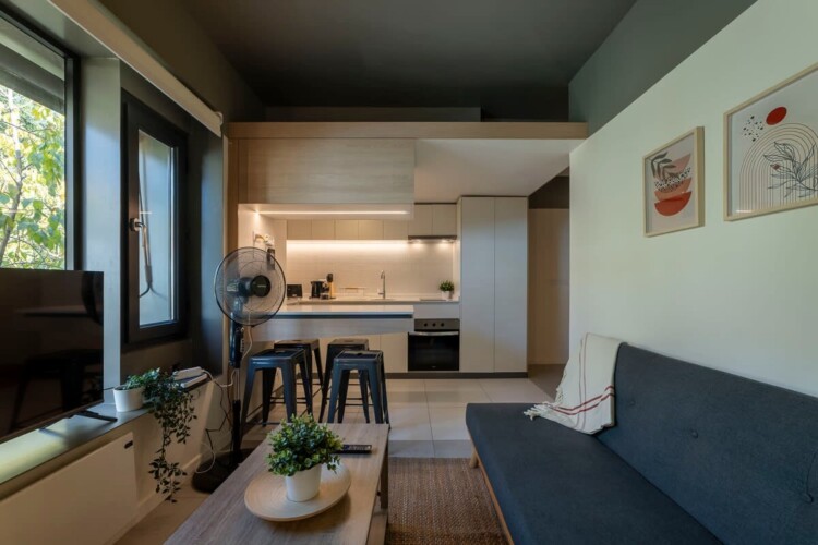 Our apartment includes a fully equipped kitchen with an electric kettle, toaster, coffee maker, two-burner induction stove, and basic cooking utensils for preparing meals or snacks at any time. The apartment is spacious and cool, featuring a double bed with fresh sheets, along with clean towels and a bathroom with a shower.