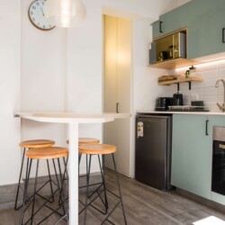 The studio’s contemporary design and thoughtful amenities create a welcoming retreat, ensuring a memorable stay in the heart of Providencia.