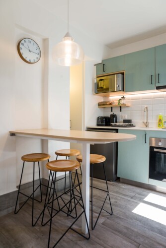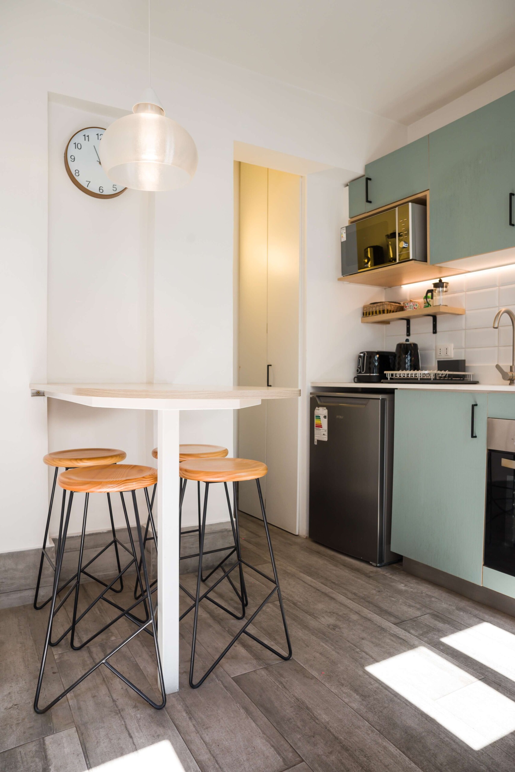 – **Dining**: Savor your culinary creations with elegant wine glasses at the intimate dining nook.