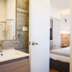 – **Bathroom**: Refresh in the sleek bathroom, complete with hot water and a hair dryer for your grooming needs.