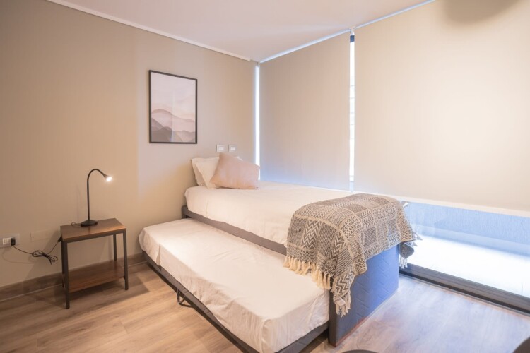 Our apartment in Ñuñoa is the perfect choice. Enjoy a spacious coworking lounge, keep up with your workout routine in our gym, or simply relax by the pool. Host a barbecue with friends or family (for an additional cost) and create unforgettable memories. Our location allows you to explore the charms of Barrio Italia and enjoy Santiago’s vibrant nightlife.