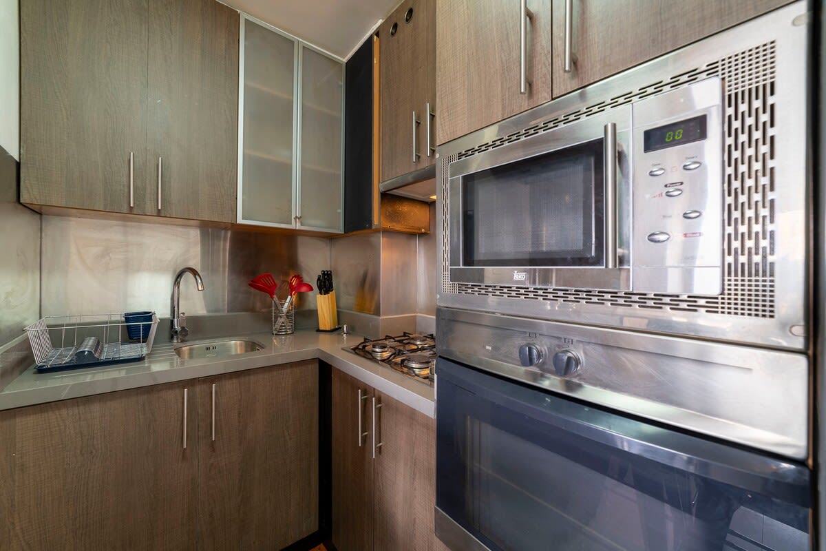El departamento estΓ‘ completamente amoblado y equipado, cuenta con todo lo que necesitas para sentirte como en casa, incluye una cocina equipada con hervidor, cafetera, cocina elΓ©ctrica de inducciΓ³n, refrigerador, microondas y utensilios de cocina bΓ‘sicos para hacer tus comidas o preparar aperitivos en cualquier momento. AdemΓ‘s, si vienes por trabajo, no te preocupes, tenemos conexiΓ³n WiFi para asegurarte conectividad durante tu estadΓa.