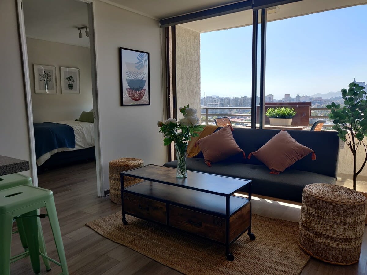 A unique accommodation for a peaceful and relaxing stay in Santiago. During your stay, you can enjoy our seasonal pool, open from December to March. We also have a barbecue area and a multipurpose room, available for an additional cost, as well as a coworking space. Excellent location, just steps from Irarrázabal Metro, close to iconic places like the National Stadium and the vibrant Plaza Ñuñoa, where you can enjoy a variety of dining and cultural options.